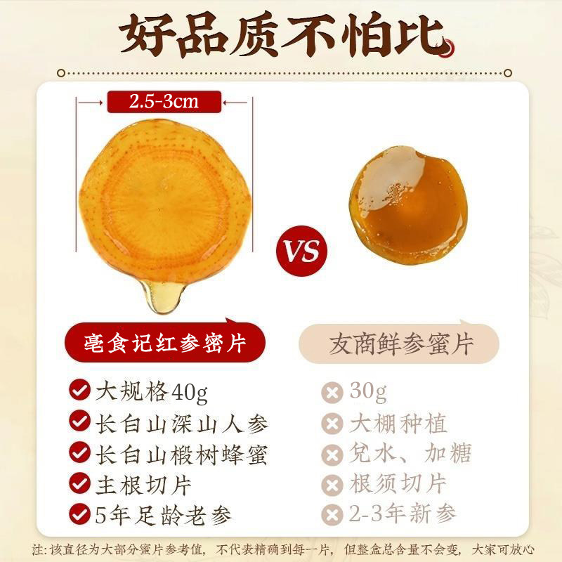 长白山人参红参蜜片即食5年切片新鲜蜂蜜补气养血正品官方旗舰店