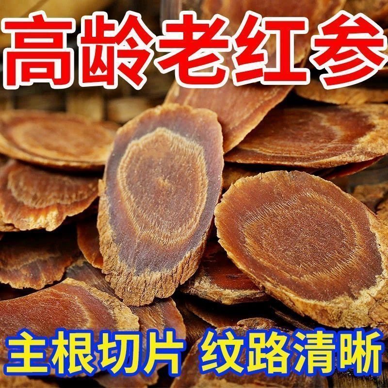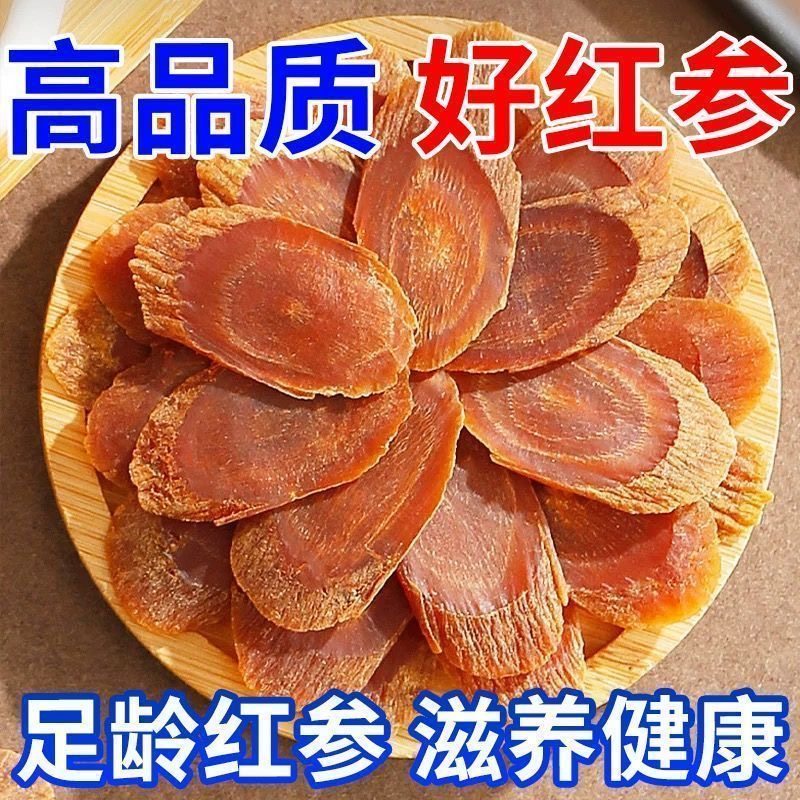 无糖红参片500g正品长白山8年红参整支中药材高丽参人参红参切片