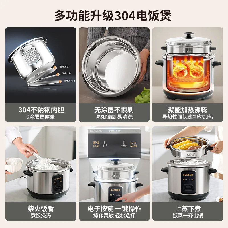 苏泊(SUOBQR)官方臻品电饭锅老式家用304不锈钢内胆0涂层电饭煲