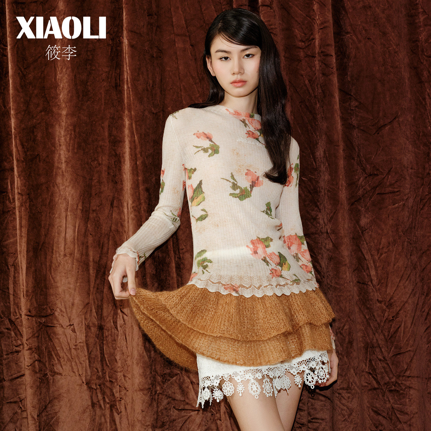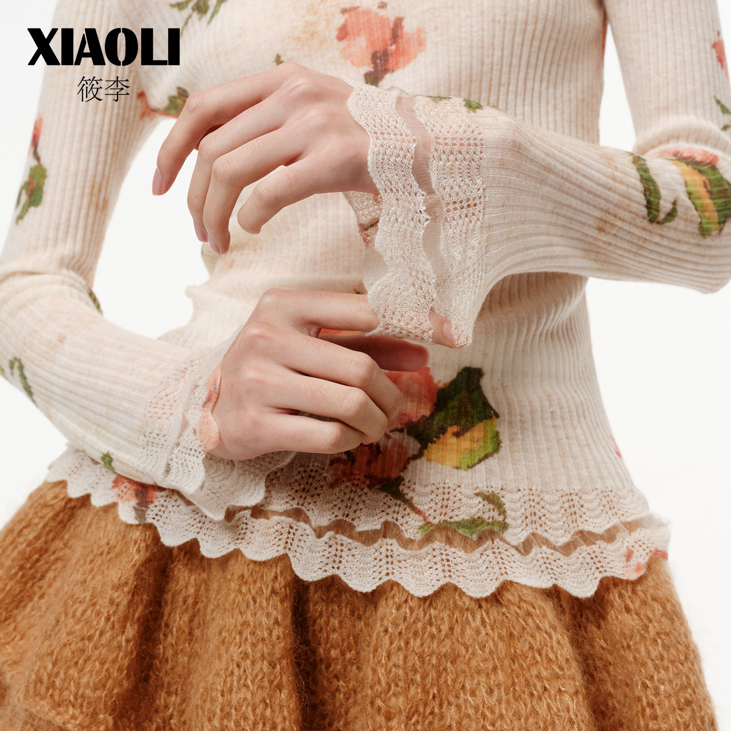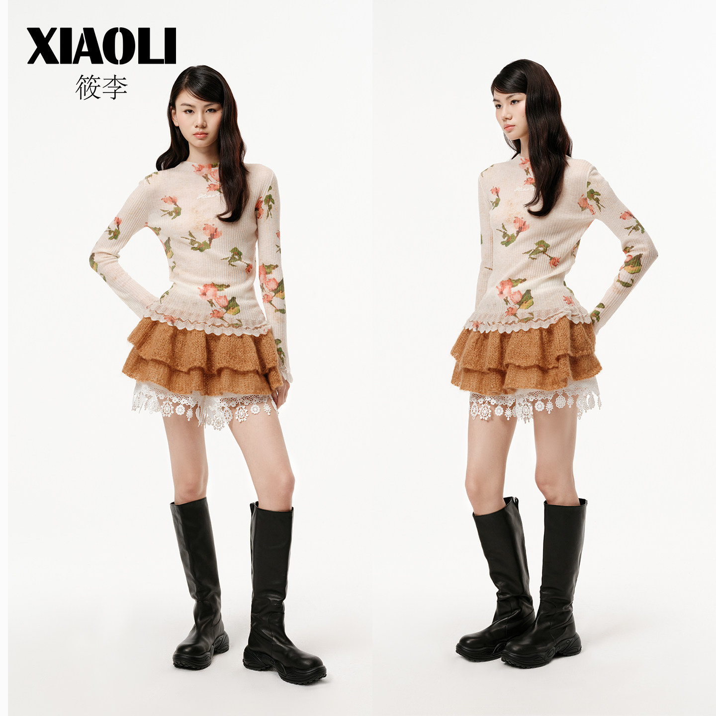 【XIAOLI筱李】链条绣logo印花羊毛小高领针织打底衫25秋冬新品