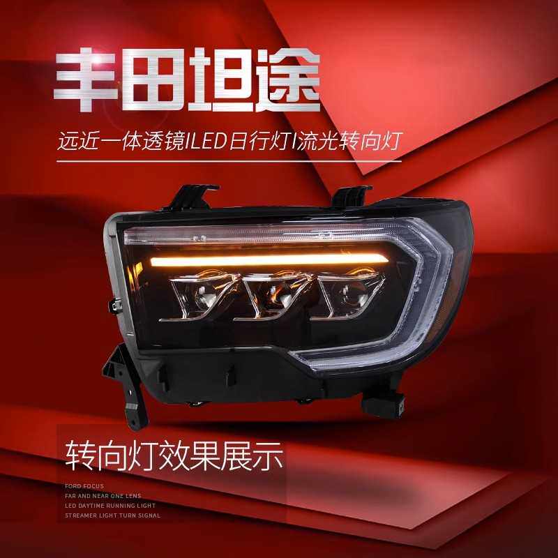 适用于07-13款坦途大灯总成红杉改装LED透镜大灯日行灯流水转向灯