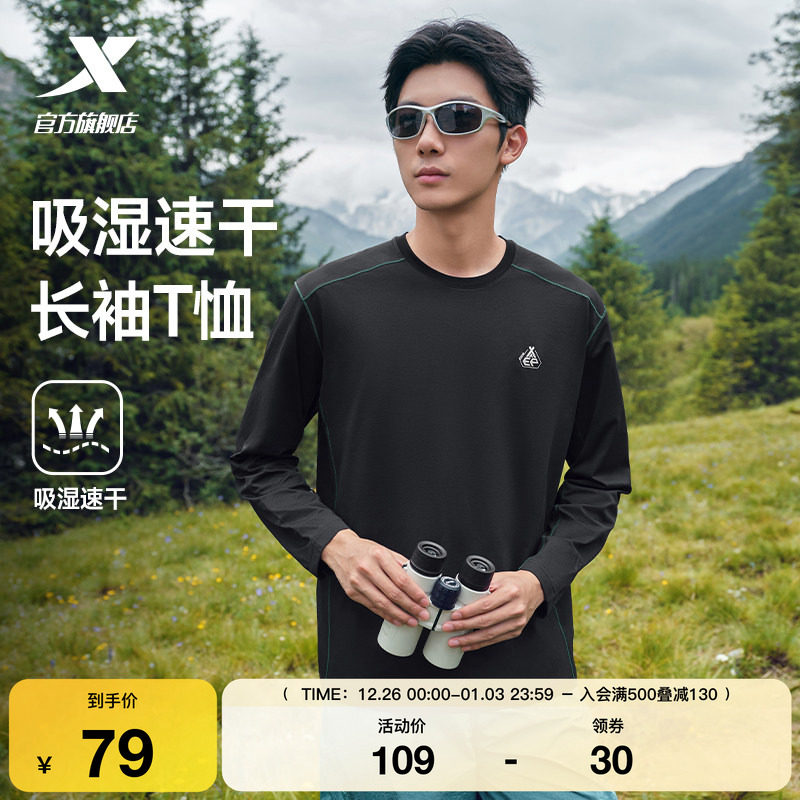 特步打底长袖t恤男女2025秋新款透气情侣运动上衣健身跑步训练服
