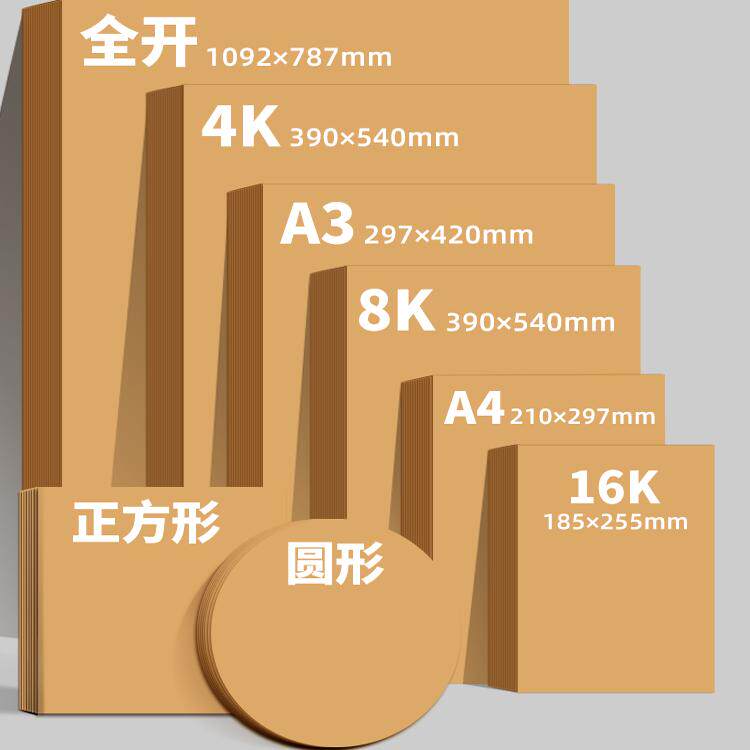 牛皮纸卡纸A4封面装订封皮a3加厚硬卡纸复印打印纸8K美术手工diy300G绘画纸16K书皮包装纸卷筒大张全开四开4k