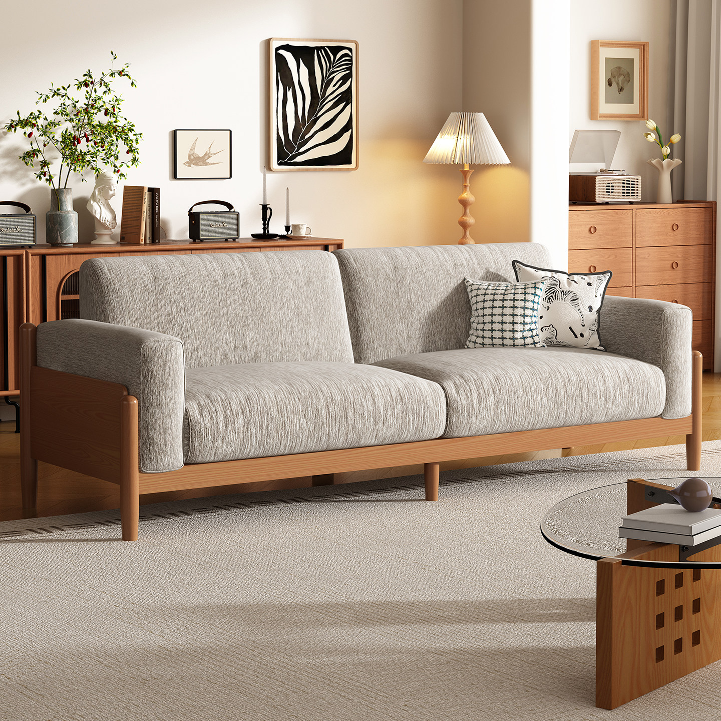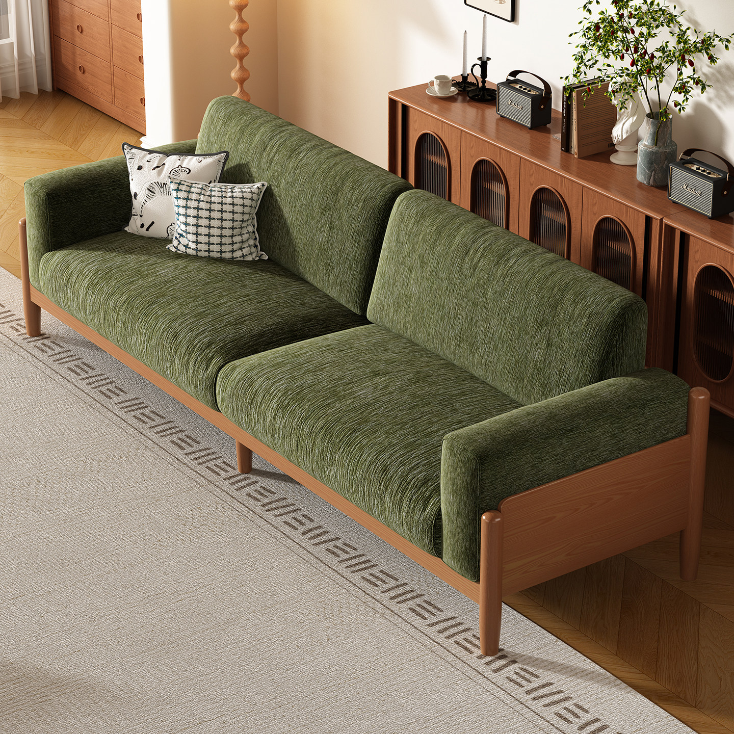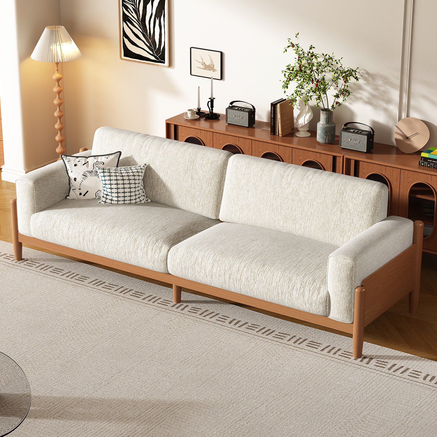全实木沙发小户型客厅直排两三人位可拆洗网红中古风棉麻布艺沙发