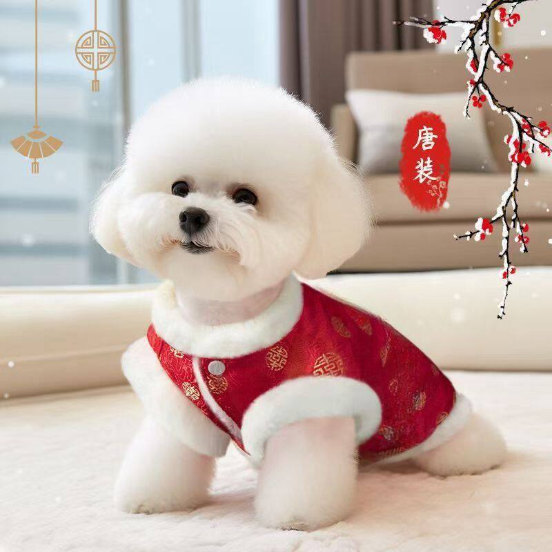 过年宠物唐装狗狗棉衣拜年冬天保暖新年春节喜庆比熊泰迪加绒背心