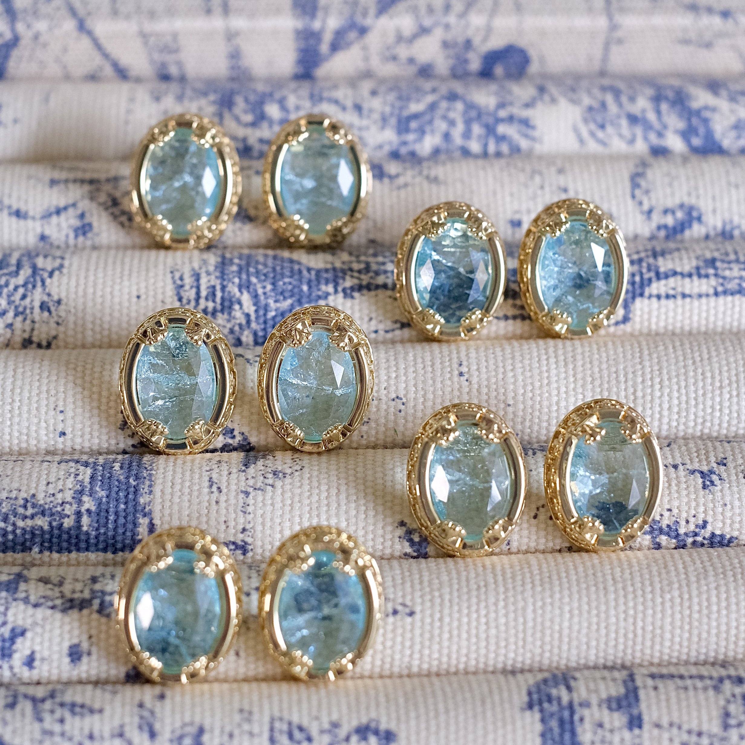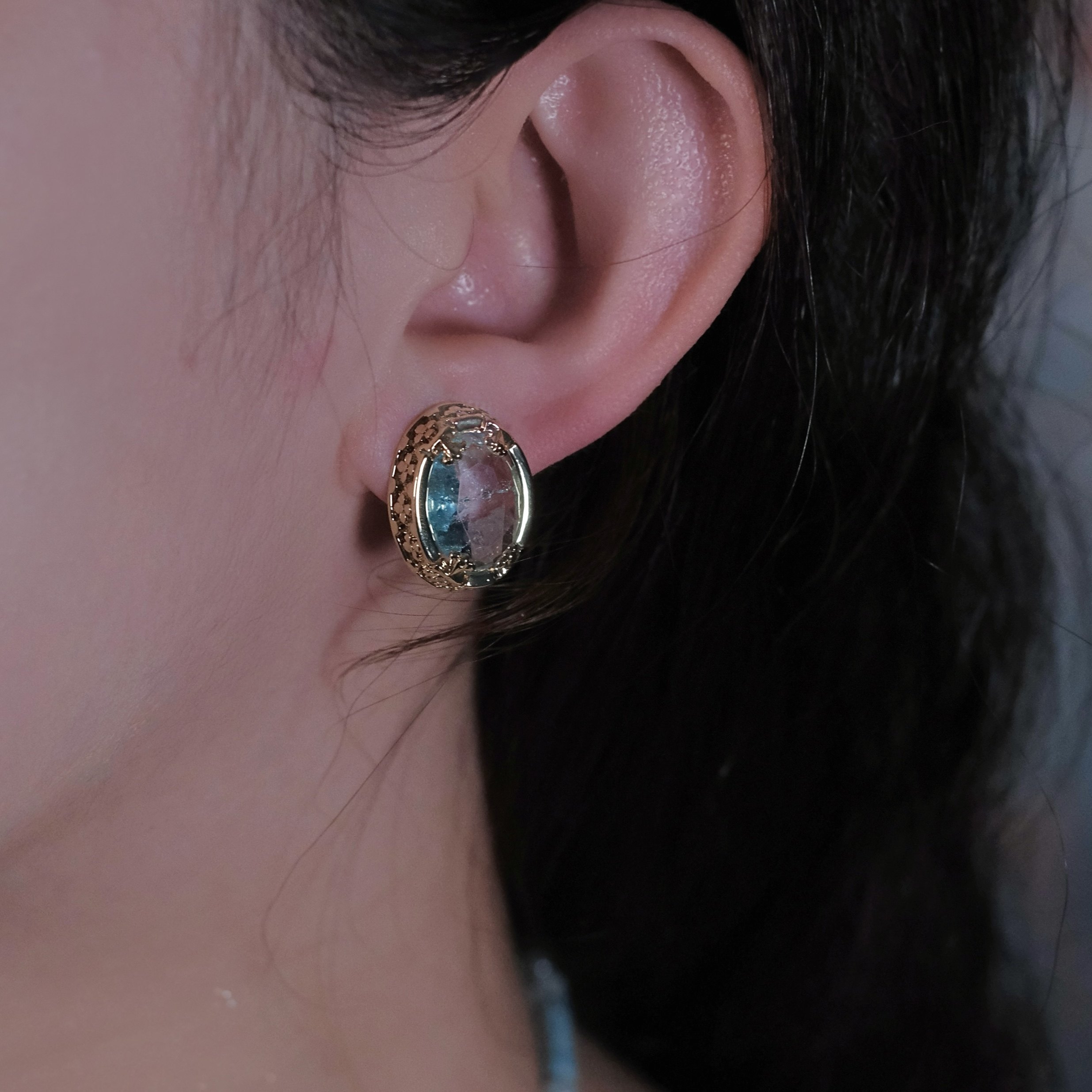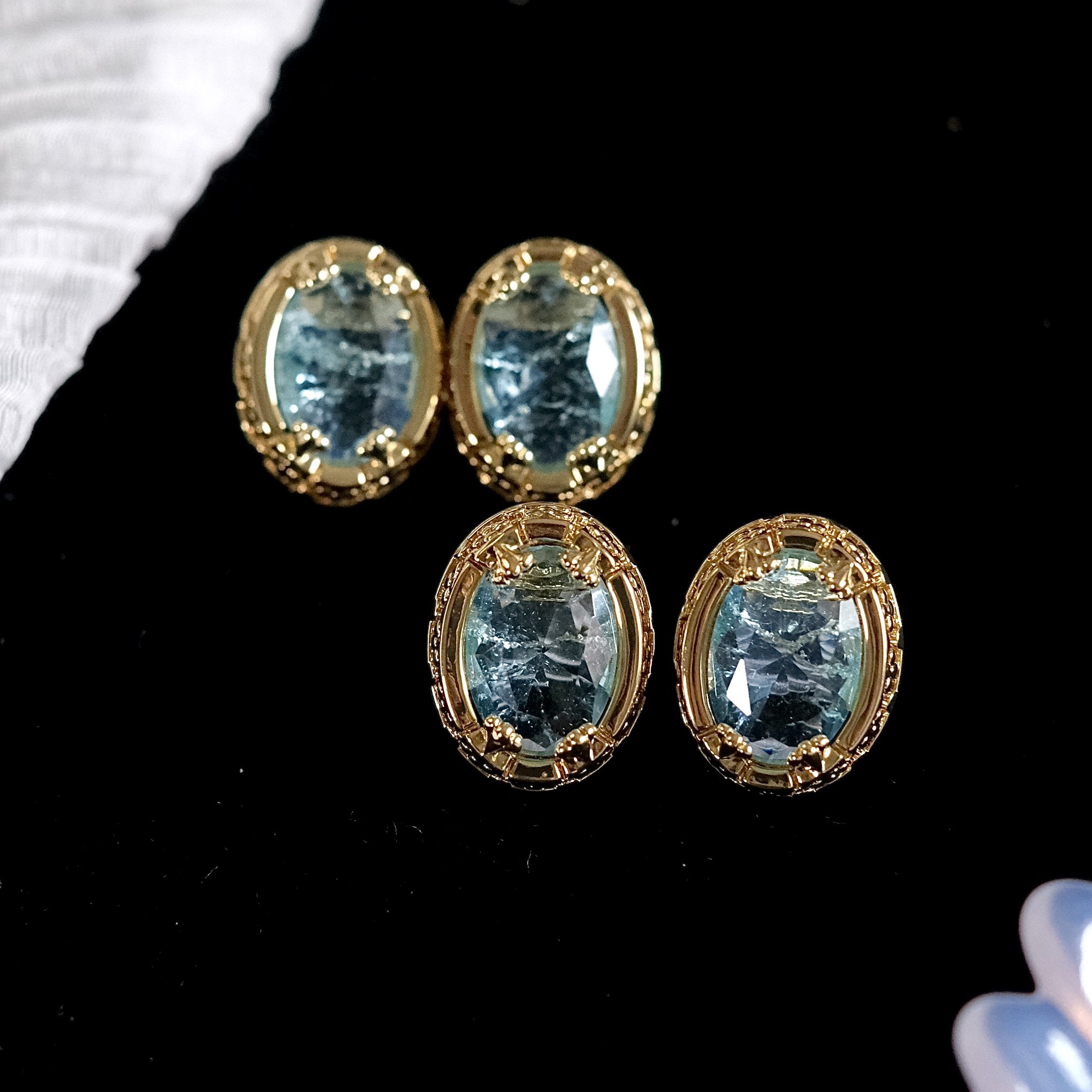 《茶卡盐湖》复古法式优雅轻奢气质爆裂纹路蓝色椭圆耳钉耳环耳夹