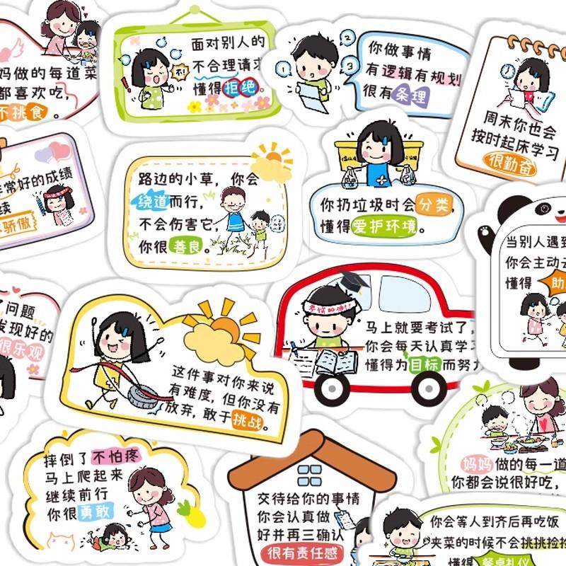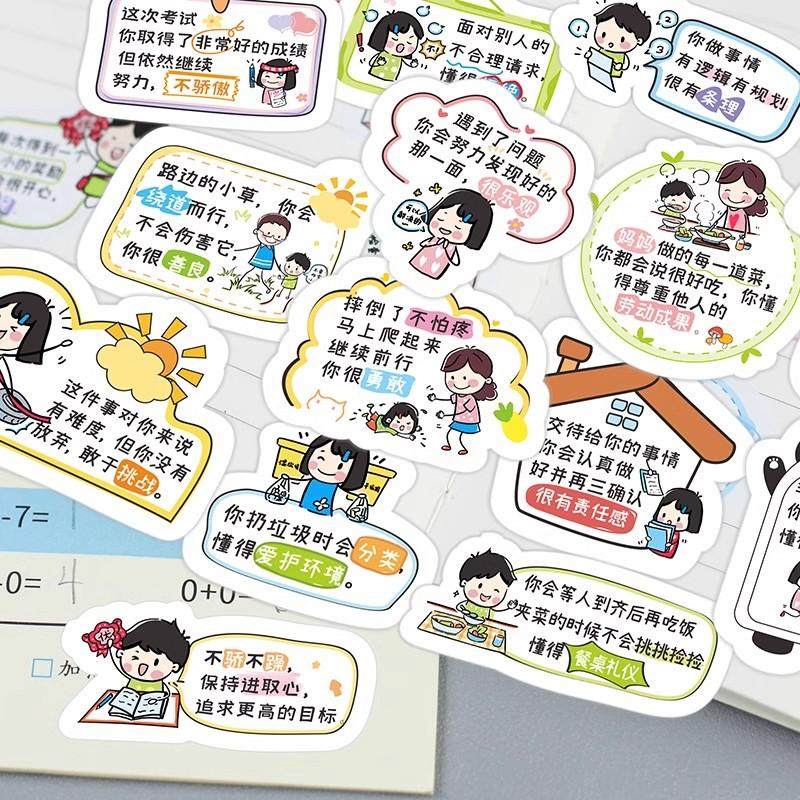 120张励志文字贴纸激励孩子学习ins卡通迷你手账小贴画防水行李箱