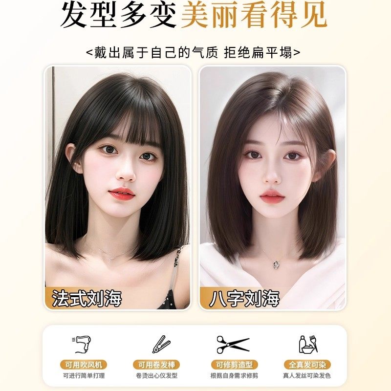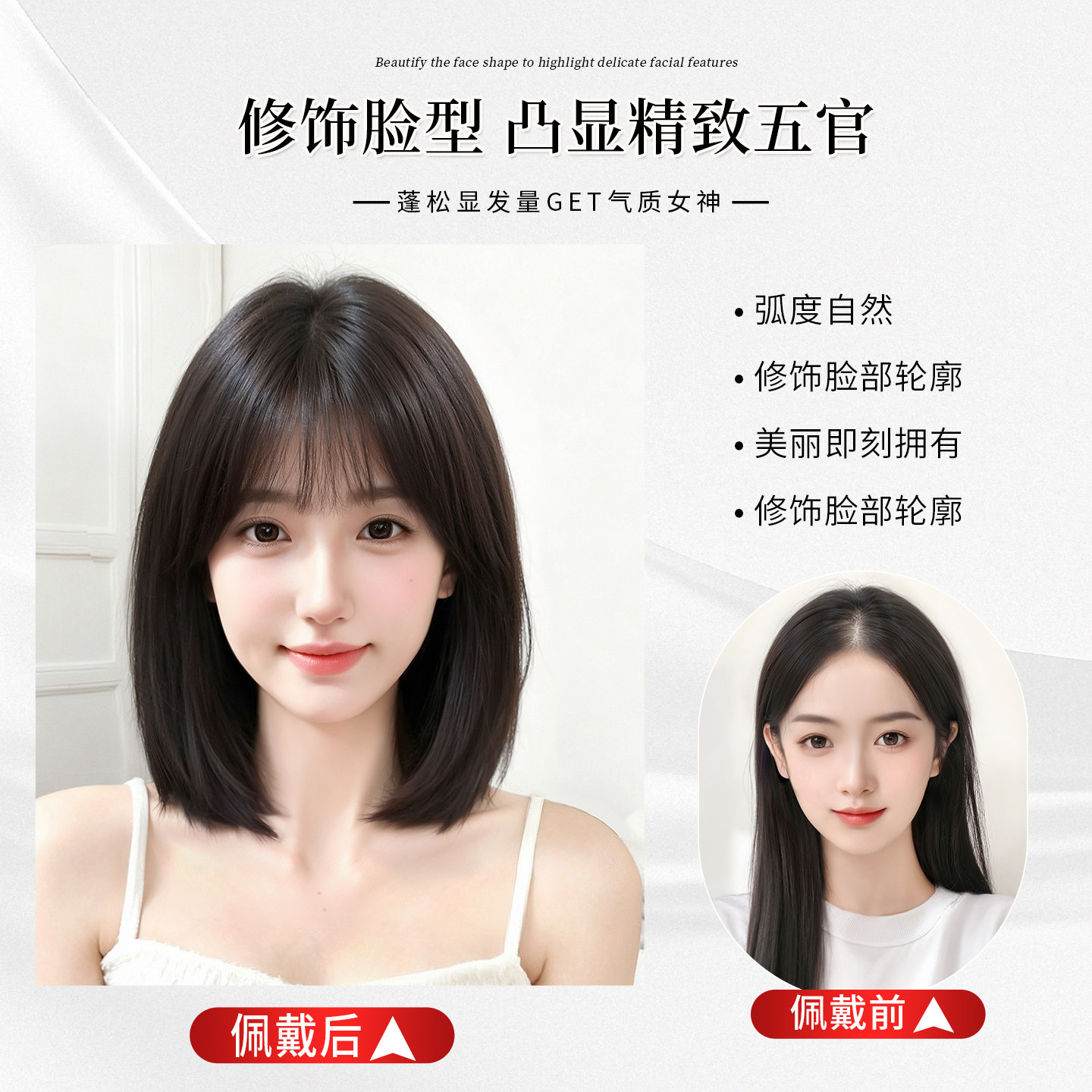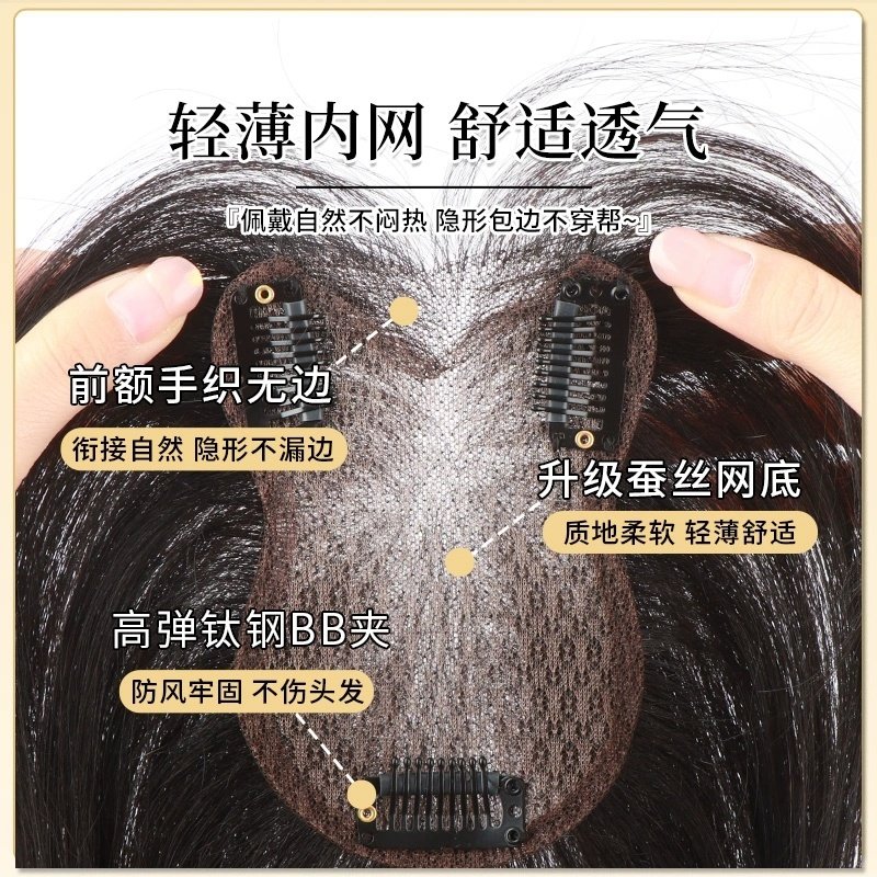 刘海假发女片头顶增发量真发遮白发高颅顶蓬松自然前额无痕补发片