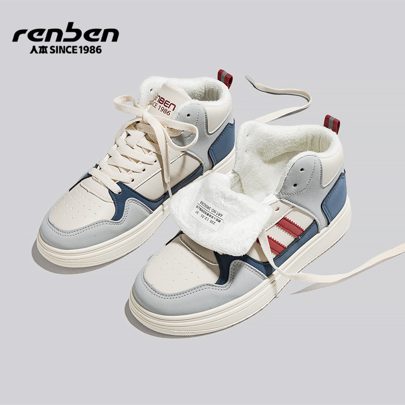 人本女鞋2025冬季新款轻便舒适防滑加绒加厚百搭潮流休闲板鞋