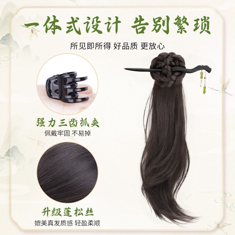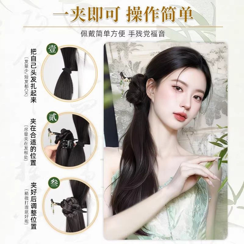 新中式假发辫假发抓夹马尾女轻国风侧马尾古风汉服旗袍风假发辫子