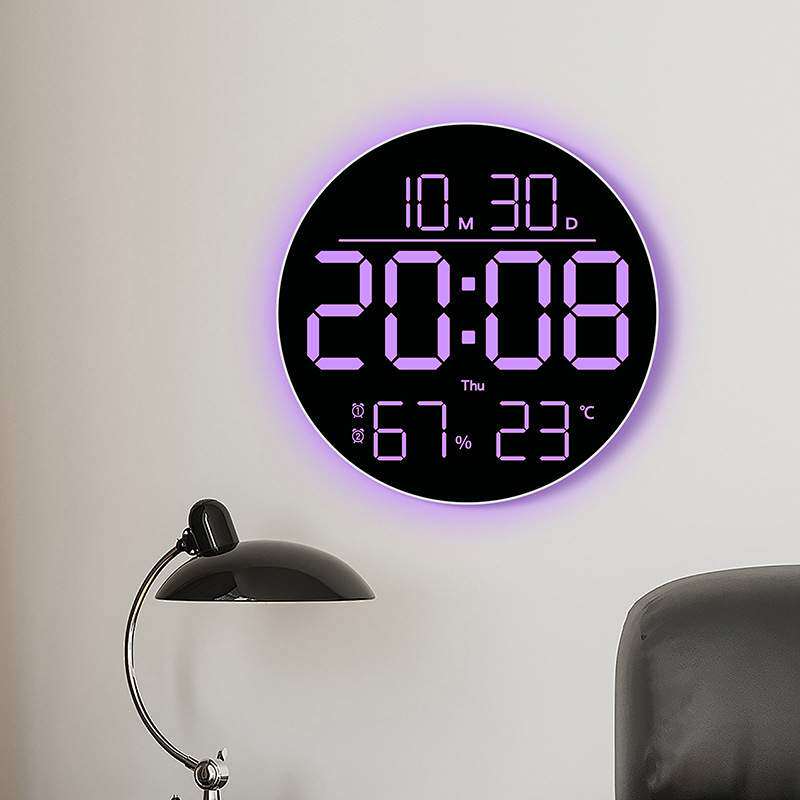 跨境新品RGB客厅挂钟大字体变色时钟氛围灯多功能家居家饰6695R