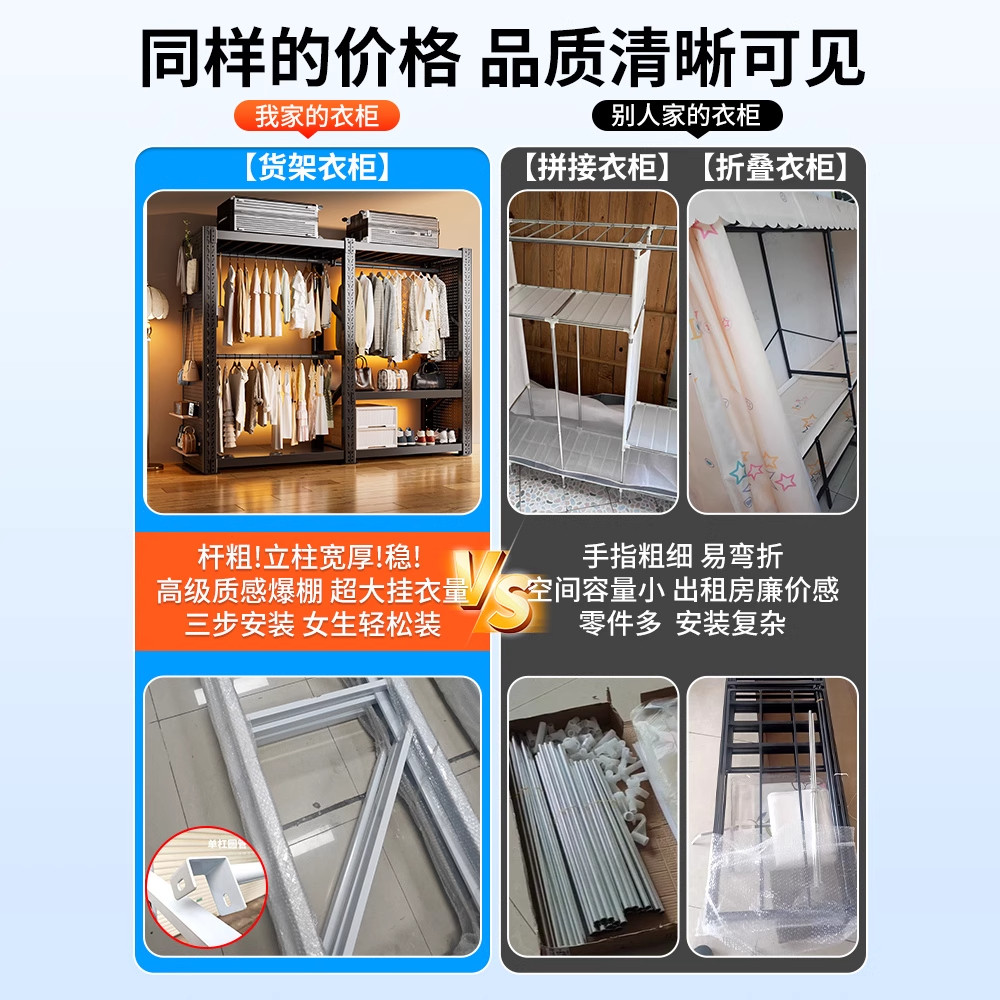 货架衣柜挂衣架置物架落地简易卧室组装开放式衣帽架服装展示架子