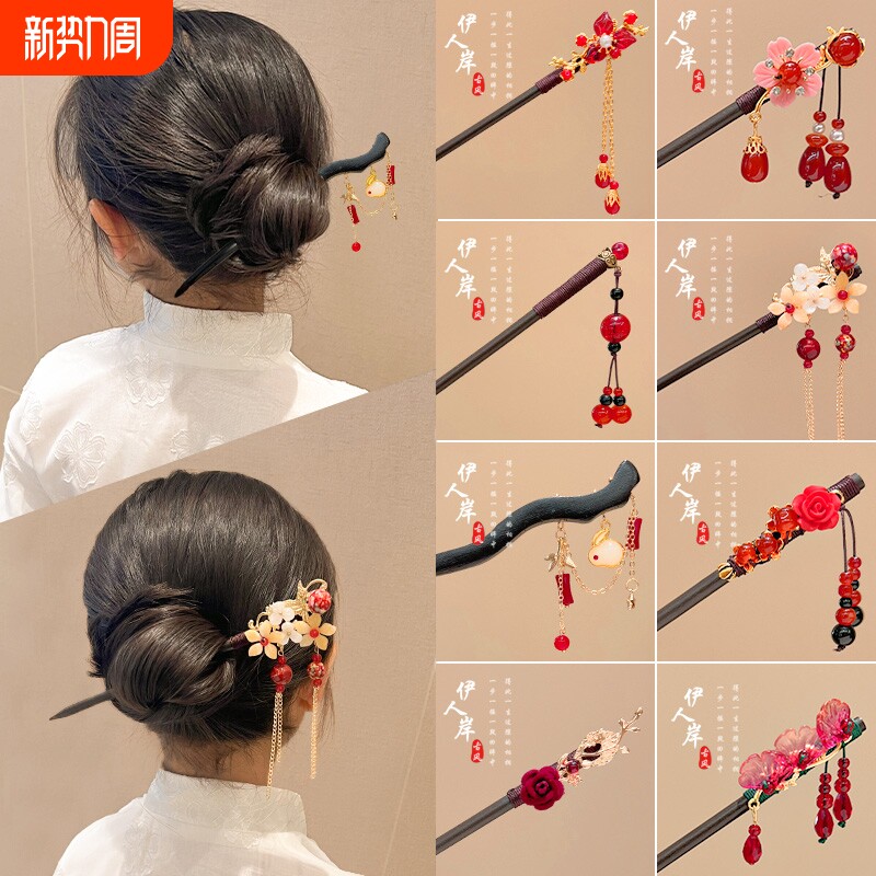 汉服女童发簪新年流苏古风发饰儿童国风马面裙配饰红色簪子女头饰