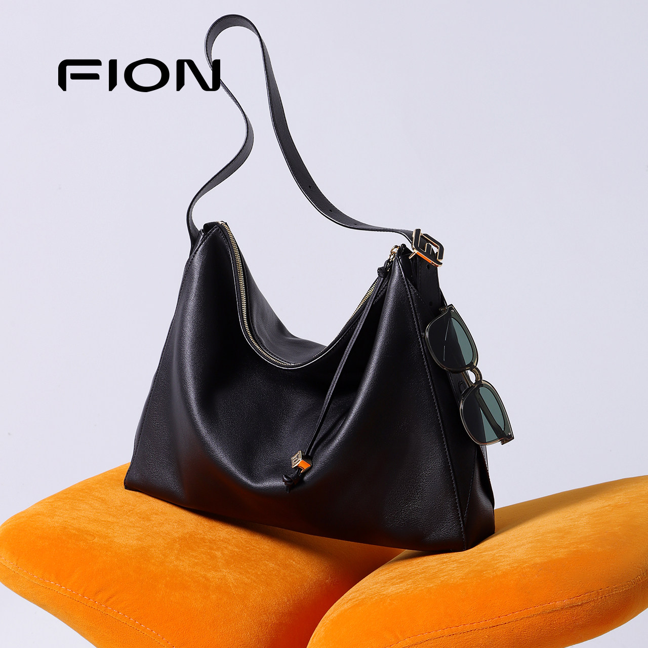 Fion/菲安妮叠叠包大号hobo托特包头层牛皮大容量通勤单肩斜挎包