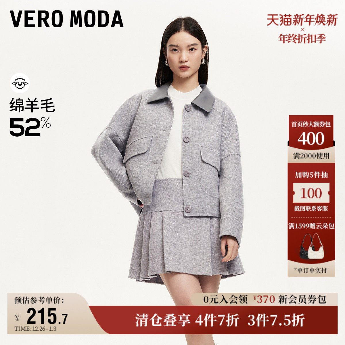 Vero Moda奥莱半身裙秋冬新款含羊毛格纹百褶裙学院风短裙流行