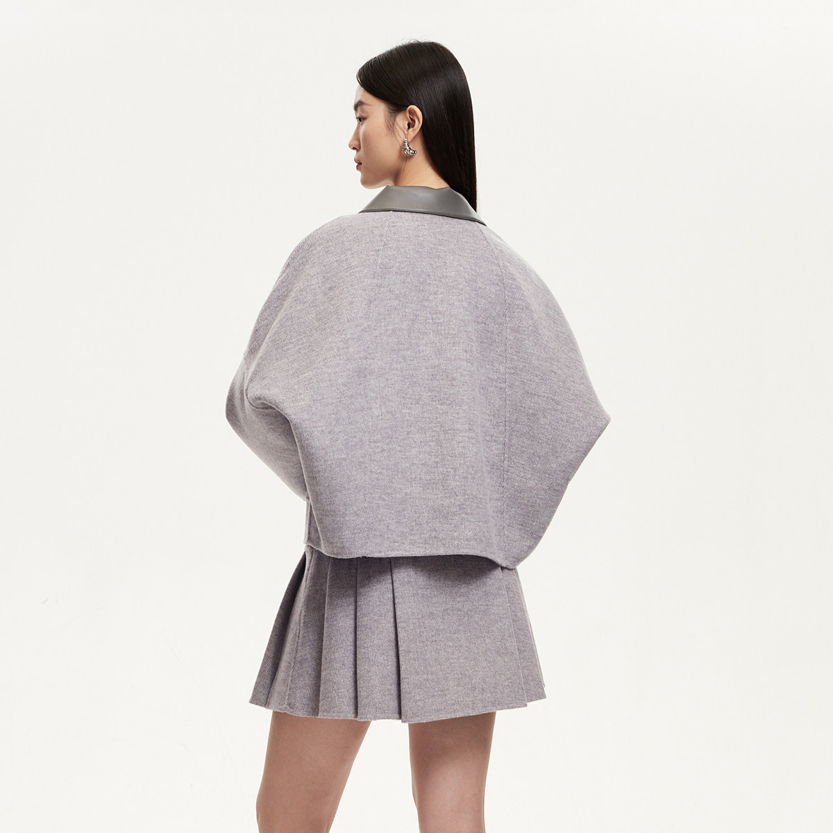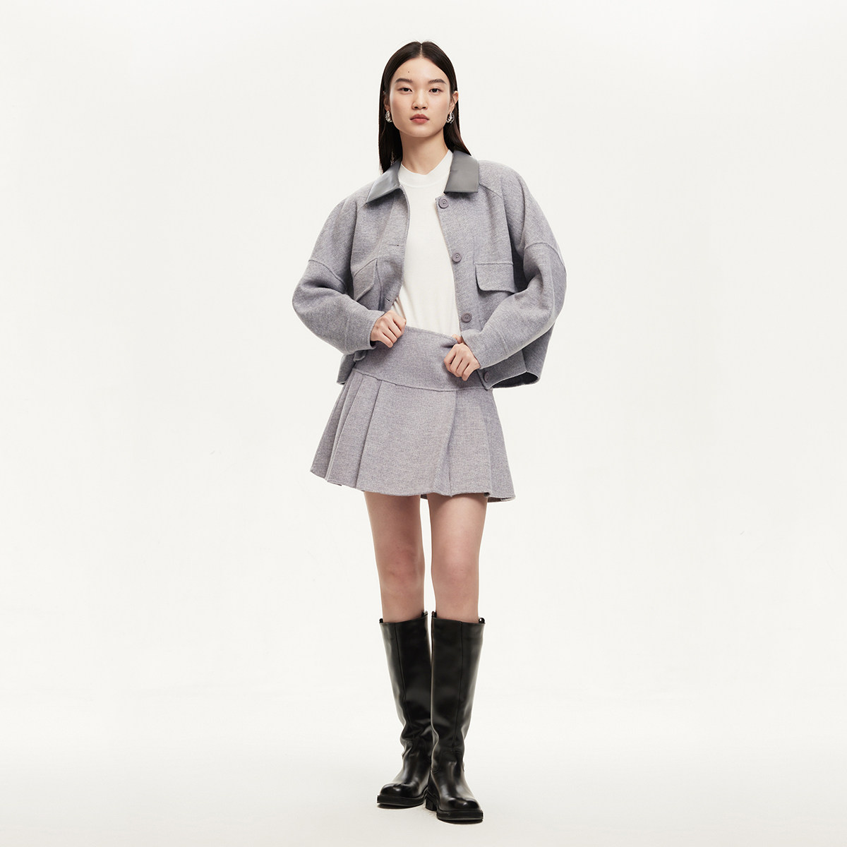 MJ STYLE灰色百褶西装裙女秋冬半身裙高腰休闲大摆a字过膝中长裙