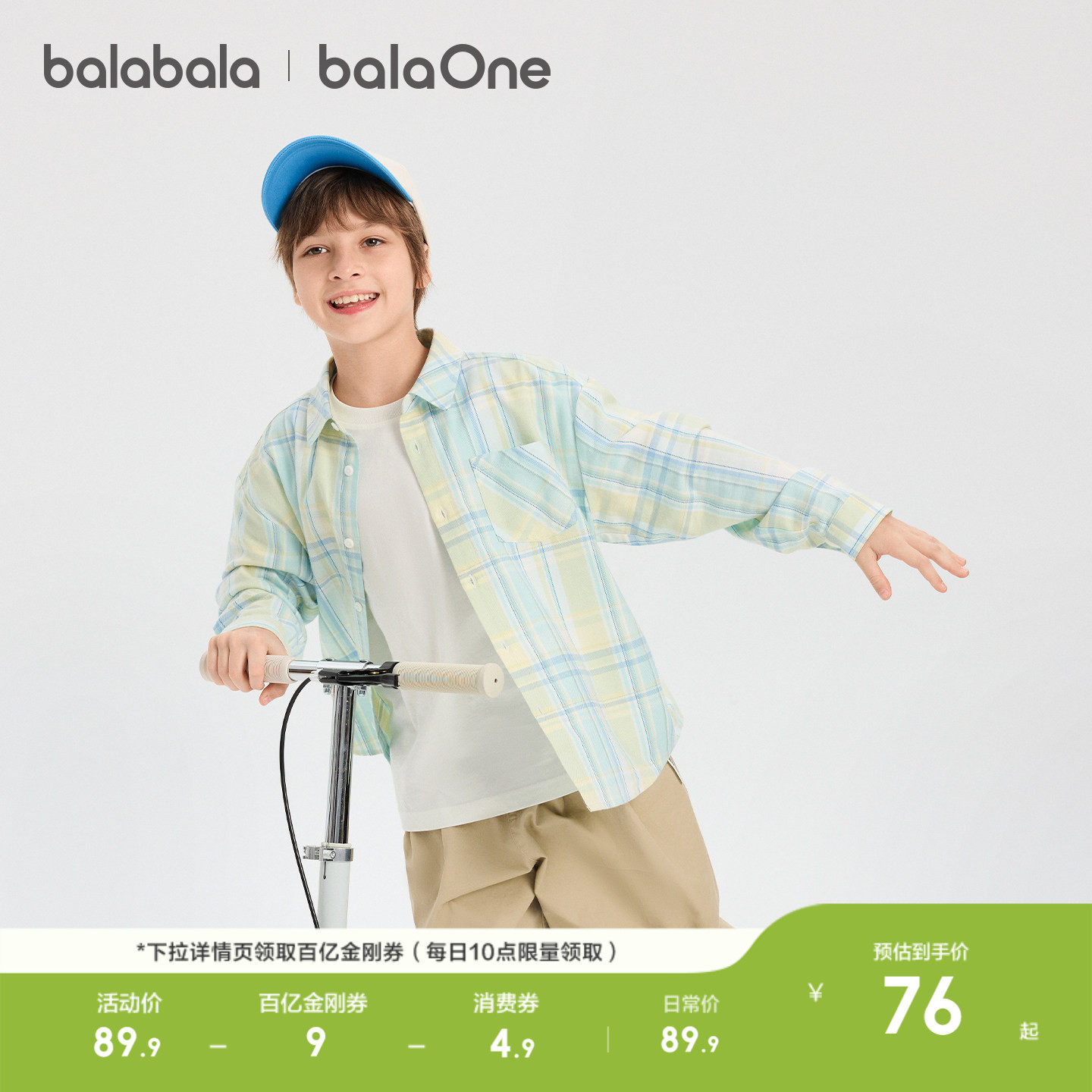 巴拉巴拉童装儿童长袖衬衫宝宝女童男童2026新款春装宽松格纹百搭