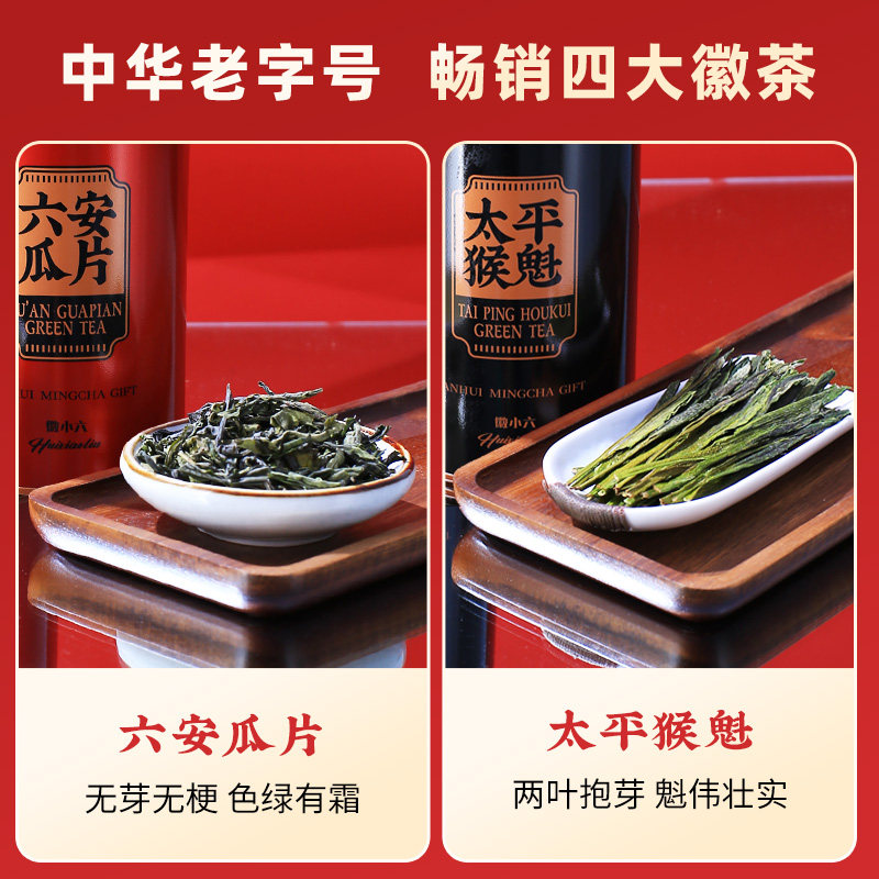 2025新茶上市徽六茶叶六安瓜片太平猴魁祁门红茶黄山毛峰礼盒240g