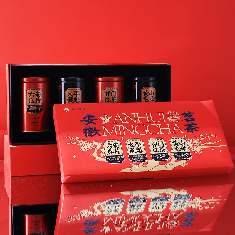 【热销】徽六茶叶六安瓜片太平猴魁祁门红茶黄山毛峰礼盒240g