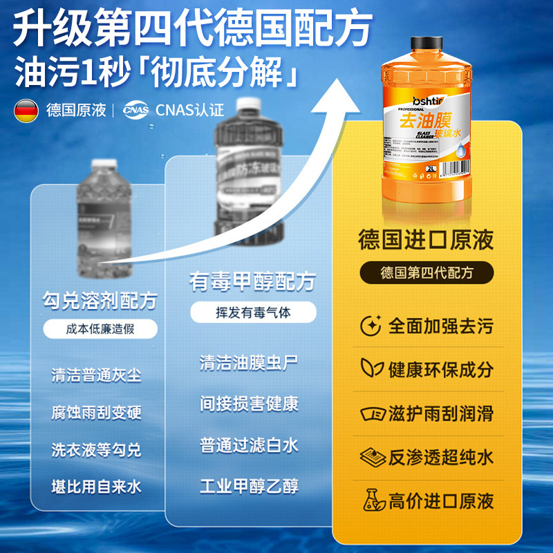 德国原液汽车玻璃水2L装防雨镀膜去油膜虫胶强力清洁除垢冬季防冻