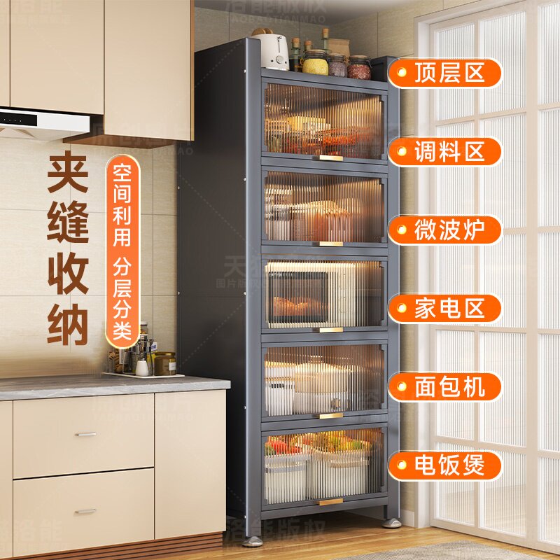厨房置物架落地多层收纳柜子微波炉家用带门夹缝多功能橱柜储物柜