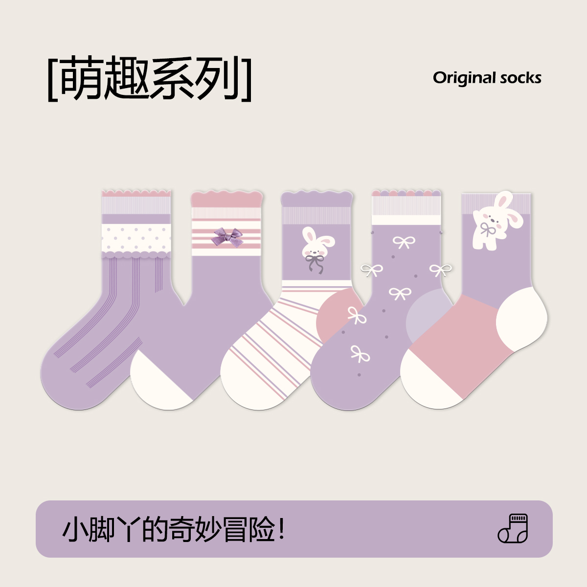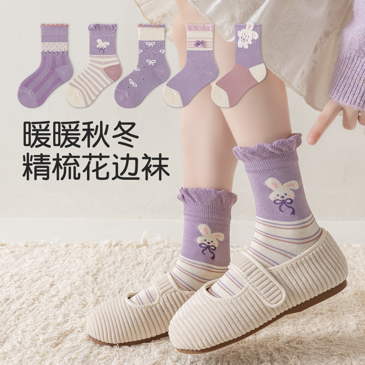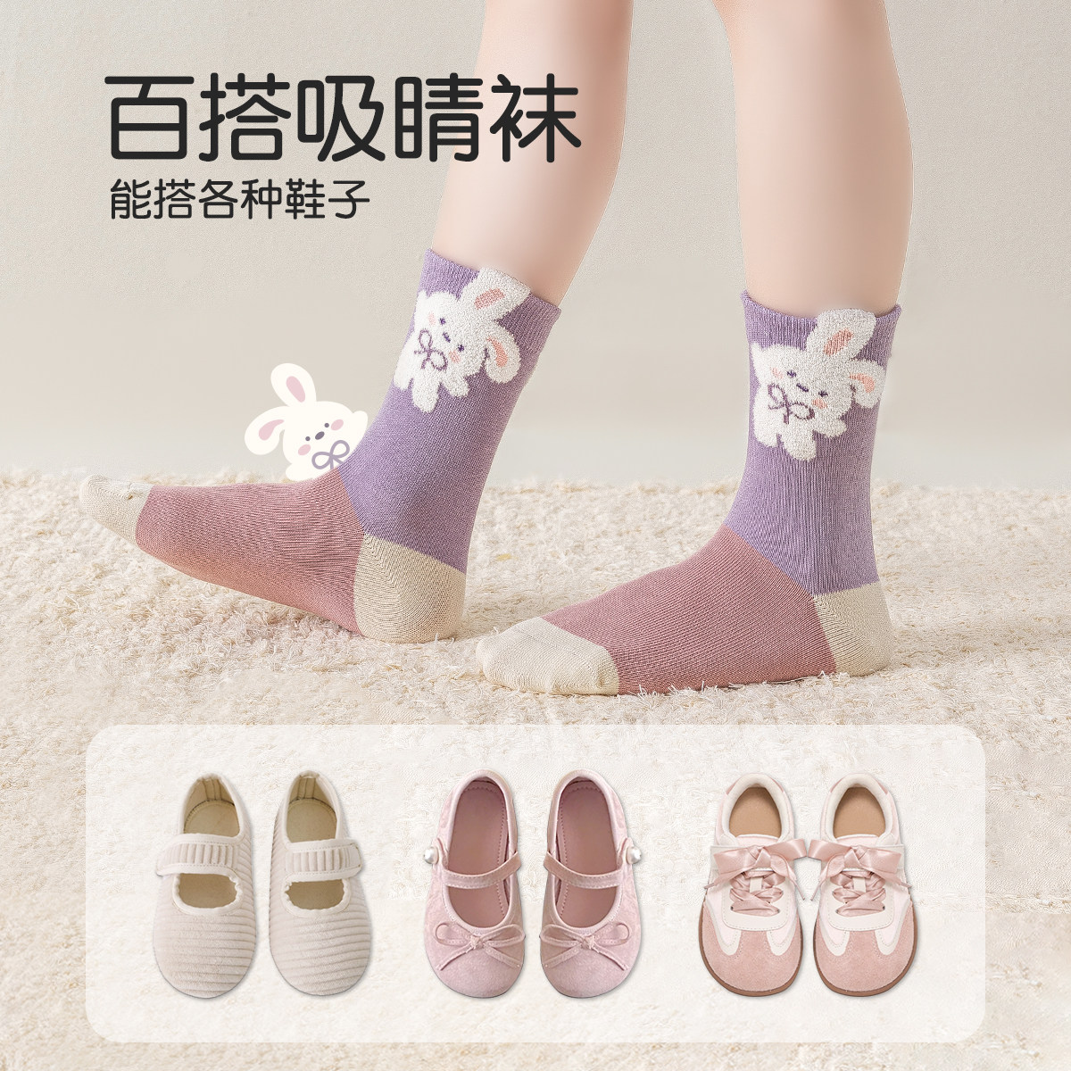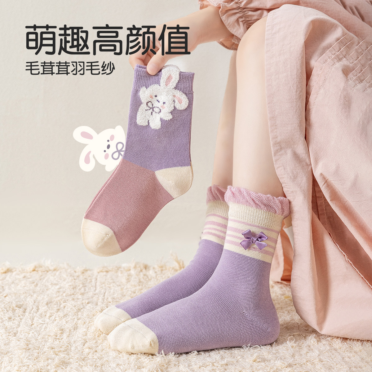 女童袜子蝴蝶结春秋季儿童袜子女童卡通兔子女宝秋冬可爱中筒袜
