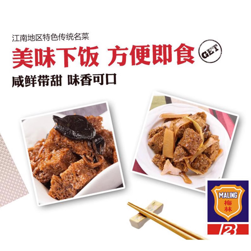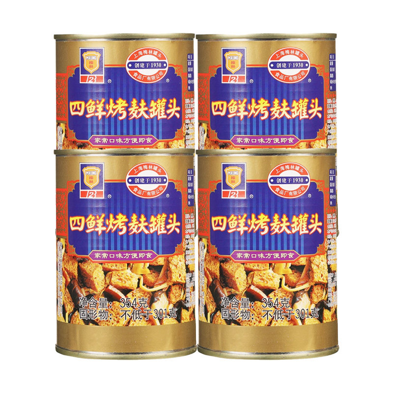 上海梅林四鲜烤麸罐头354g*3罐特产即食蜜汁油焖笋食品烤夫干面筋