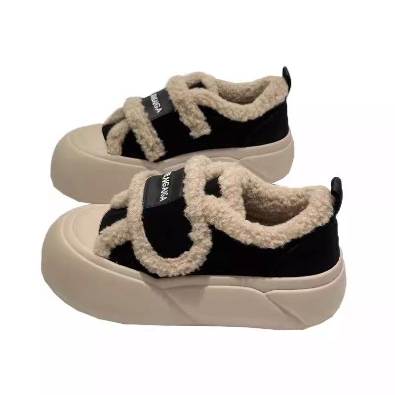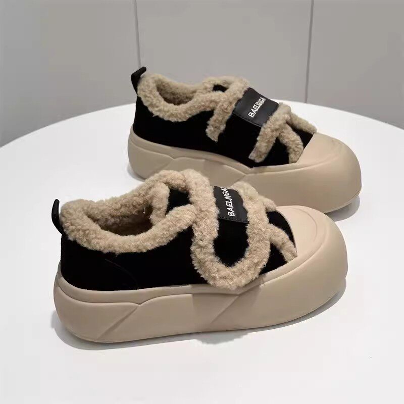 多嘴驴Donkey丑萌板鞋女冬季小众原创魔术贴小白鞋休闲厚底德训鞋