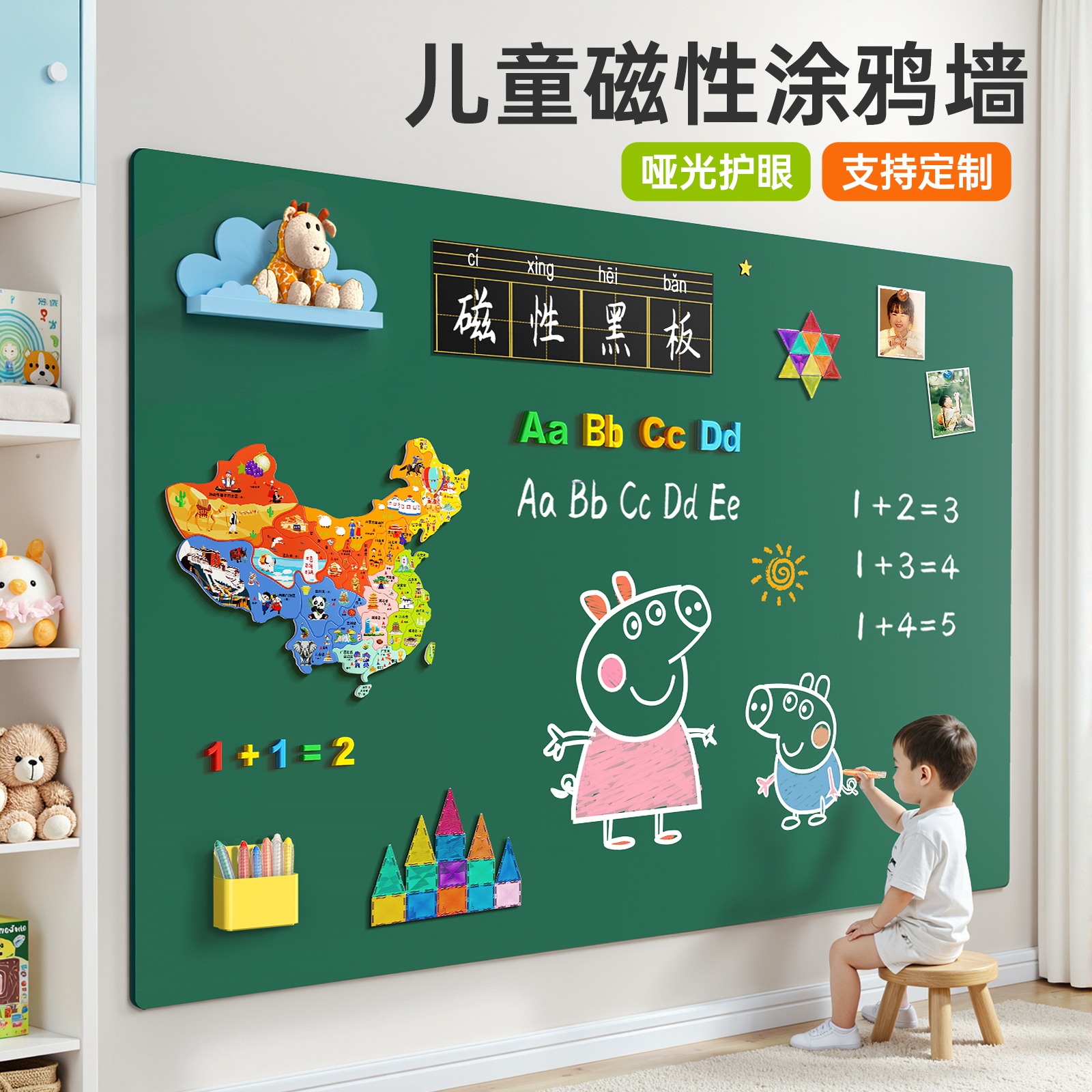 黑板墙贴家用儿童可移除不伤墙磁性在墙上学习写字板画画涂鸦小黑板家庭磁吸教学小白板磁力可擦无尘贴纸画板