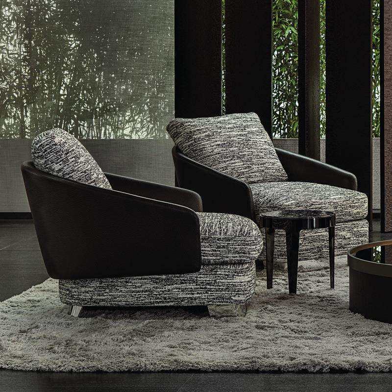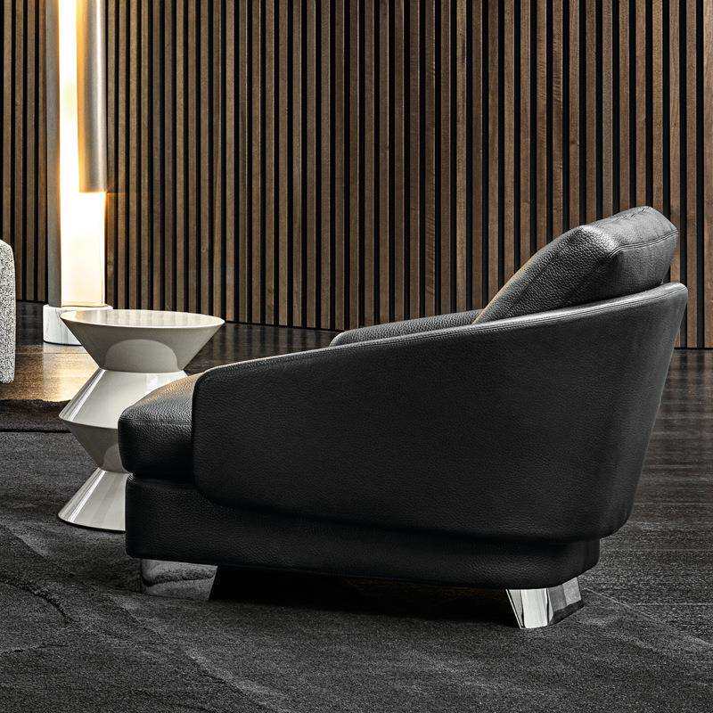 轻奢单人沙发椅不锈钢金属脚意式布皮艺设计师休闲椅