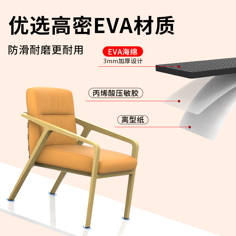 3M椅子桌子静音脚垫桌椅防滑垫片家具腿耐磨加厚凳腿餐桌脚防刮地板降噪家用沙发增高垫防响缓冲防滑贴