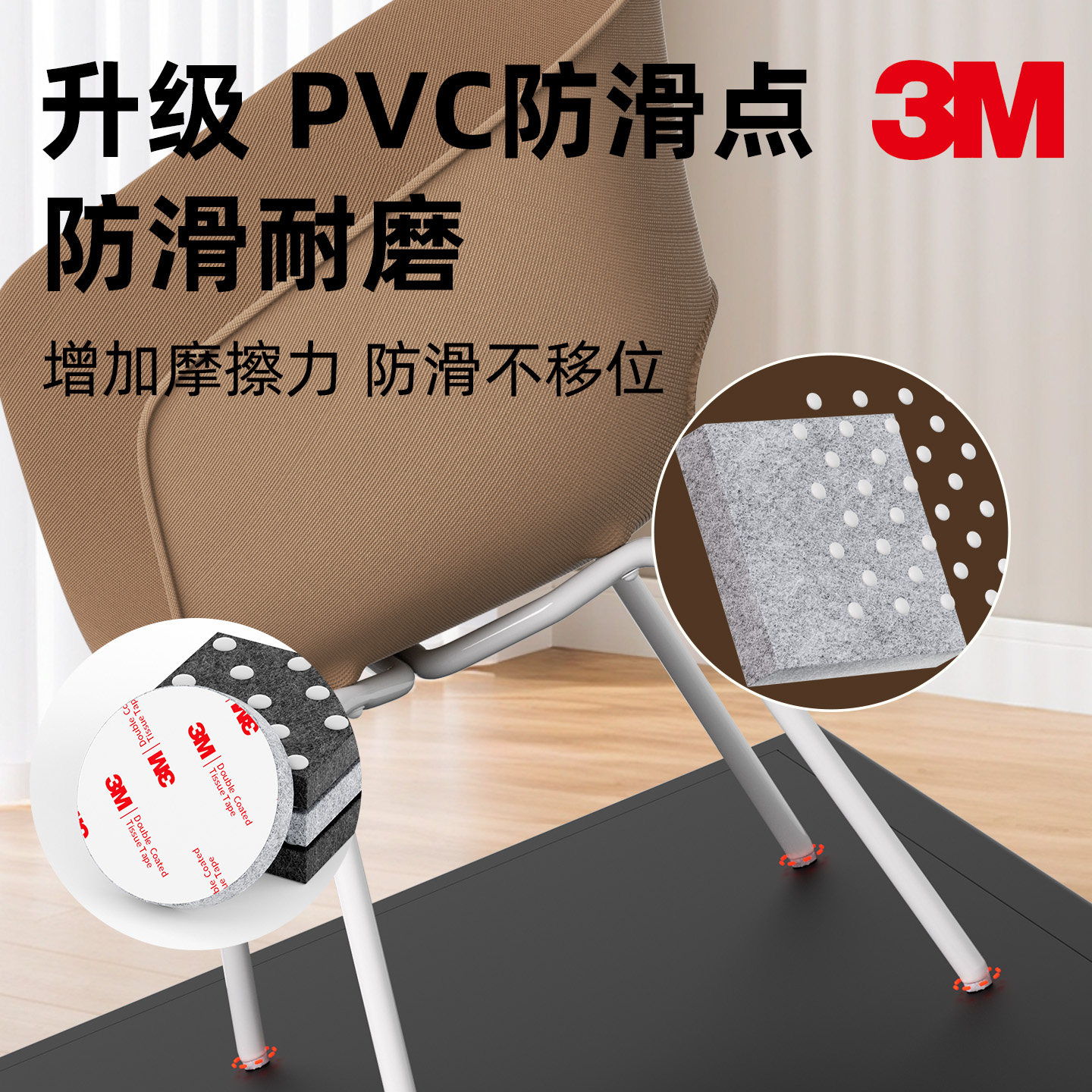 3M静音桌脚垫毛毡加厚餐桌椅沙发腿耐磨自粘保护脚套床头板凳脚防滑缓冲家具防撞贴增高自粘防响胶带垫片