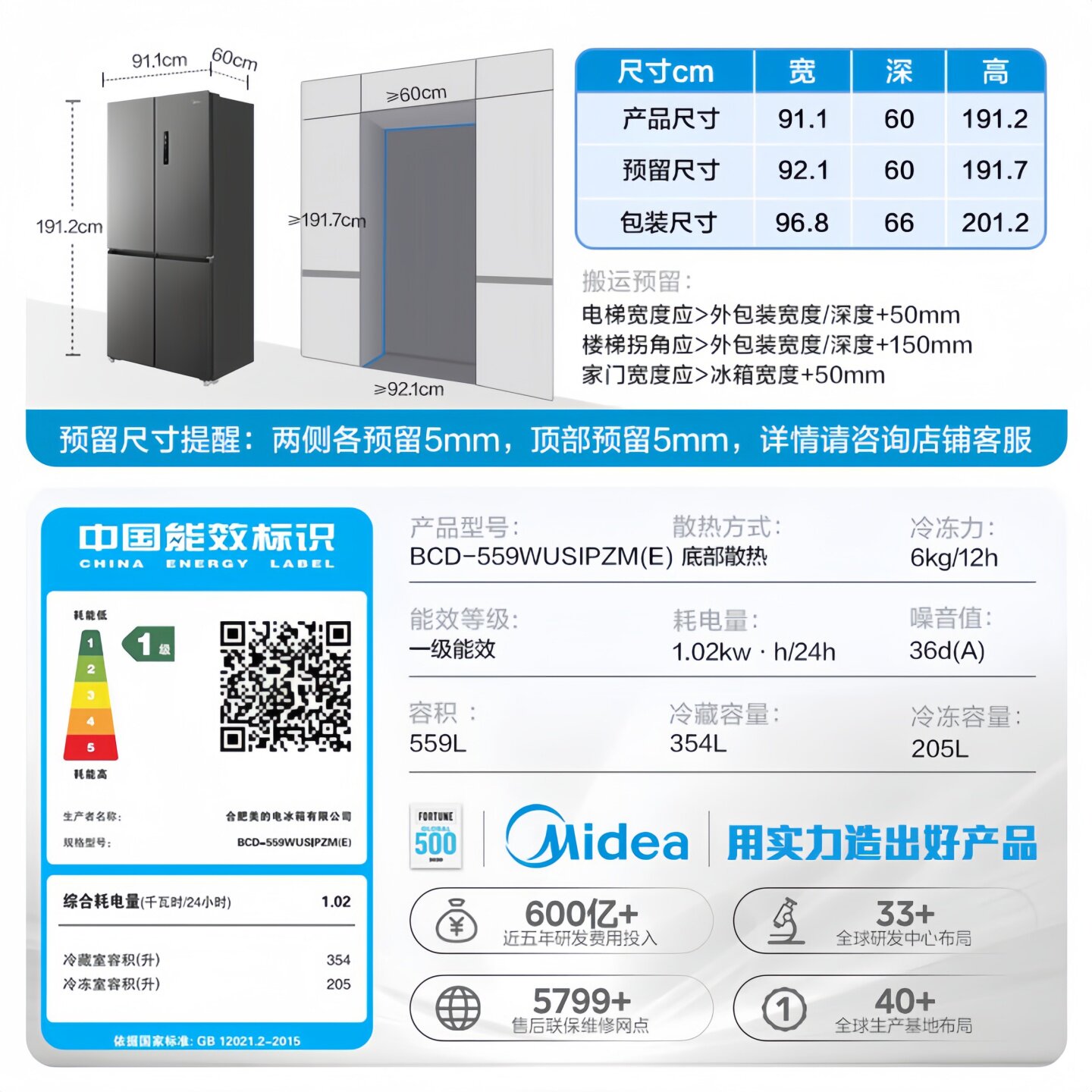 美的570+/606对开双开门两门大容量家用冰箱一级节能风冷无霜超薄