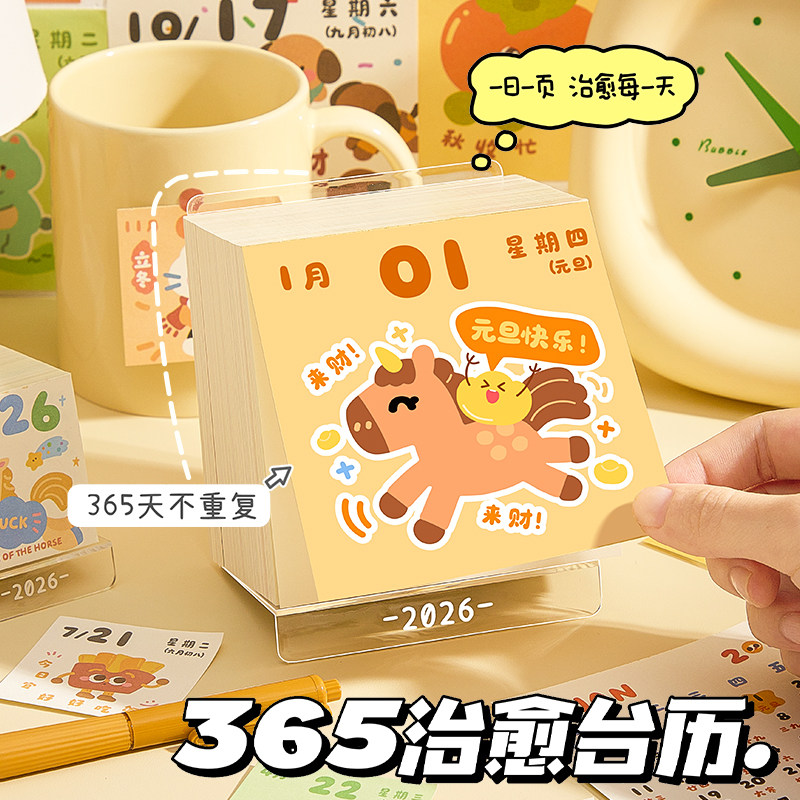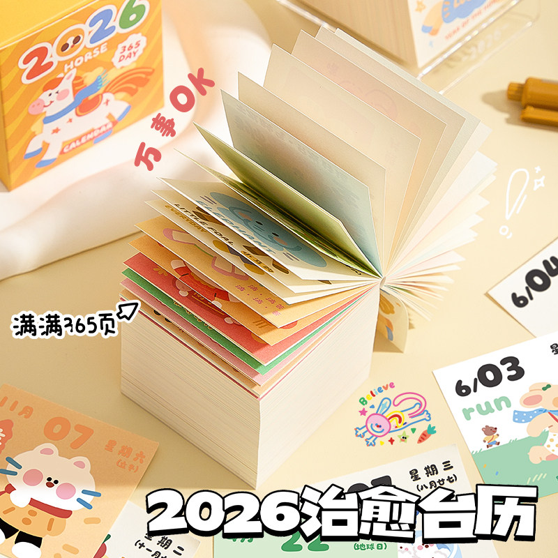 2026年日历新款手绘治愈暖心台历桌面摆件每日一撕diy手账贴贴纸高颜值解压日程计划表朋友情侣生日伴手礼物