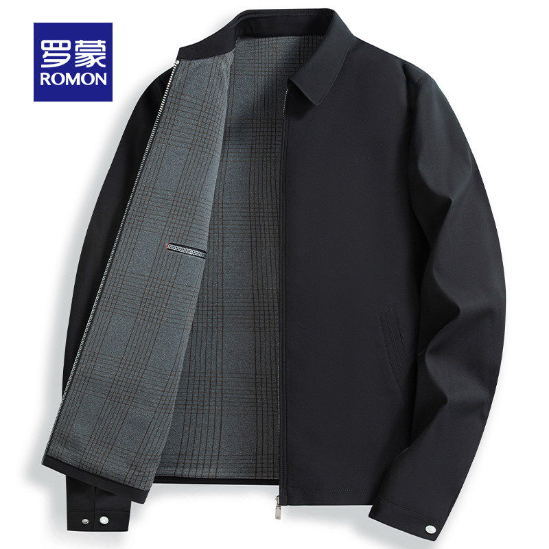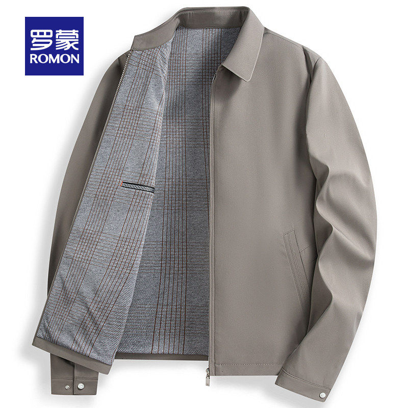 罗蒙男士商务翻领行政夹克衫2026春季新款干部装大码外套男爸爸装
