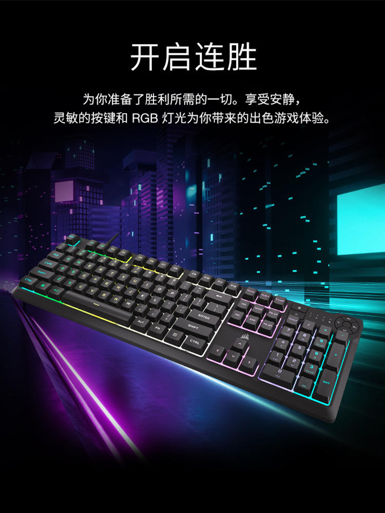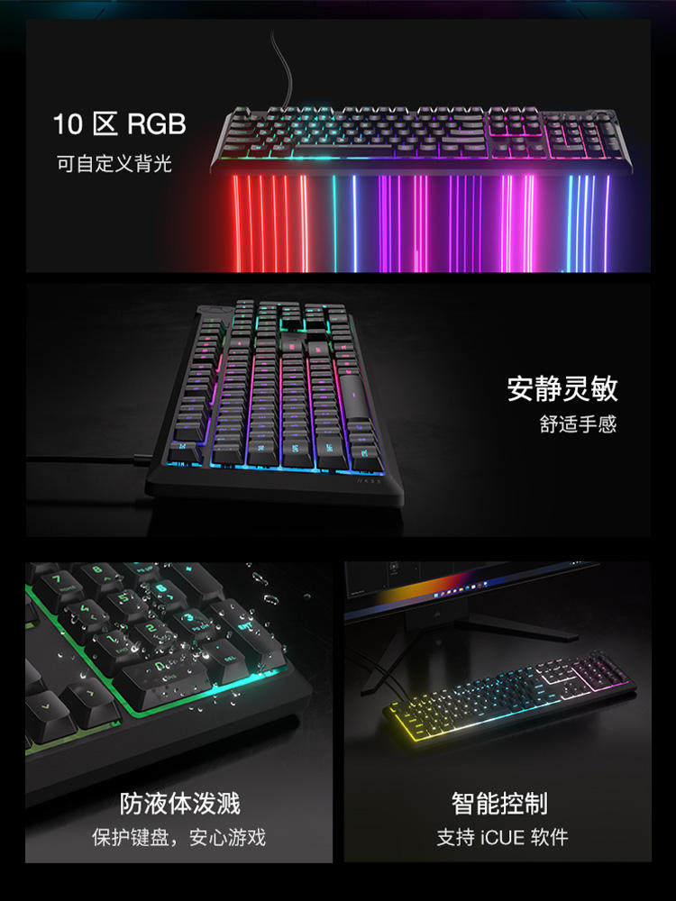 美商海盗船K55 CORE RGB背光薄膜键盘游戏办公无冲自定义编程宏制