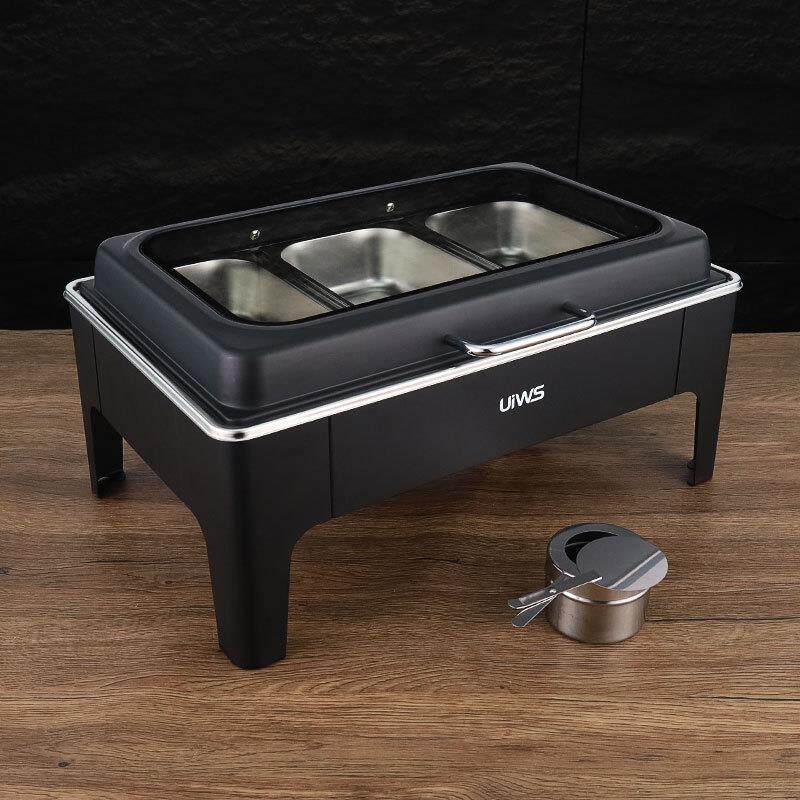 豪华款不锈钢长方形自助餐炉9.0L多格酒店餐厅食物加热容器布菲炉