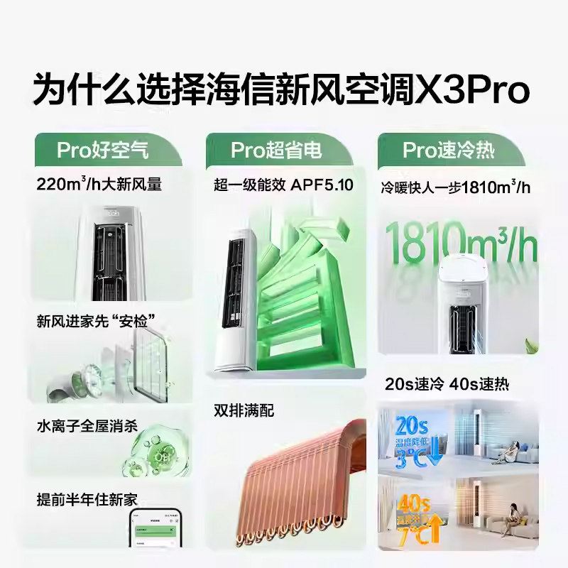 海信新风空调大3匹X3PRO家用立式一级能效柜式客厅柜机以旧换新