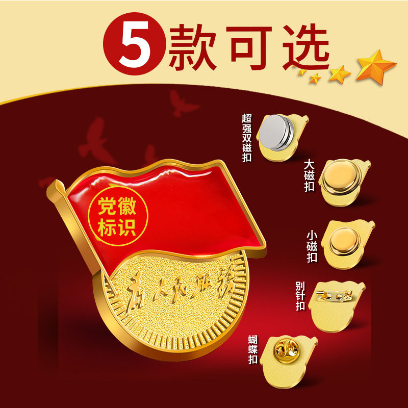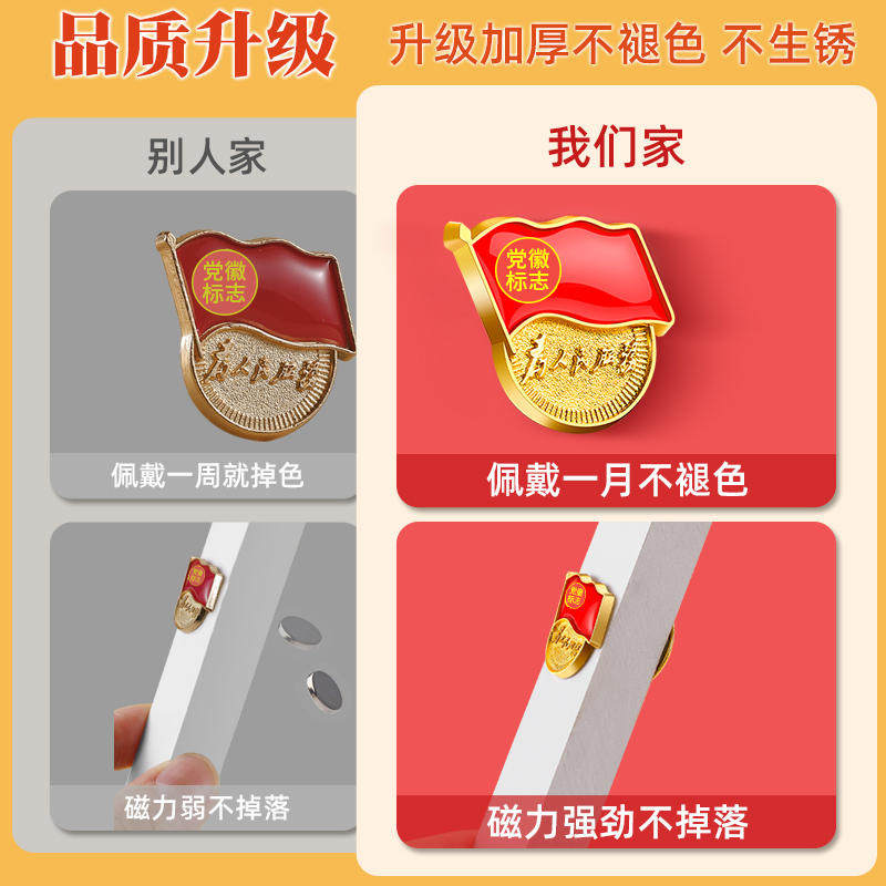 党徽强磁新版党员胸徽别针式胸针吸铁石磁吸加厚强力大磁铁磁扣蝴蝶扣高档正版徽章党章纪念章党微礼盒标准款
