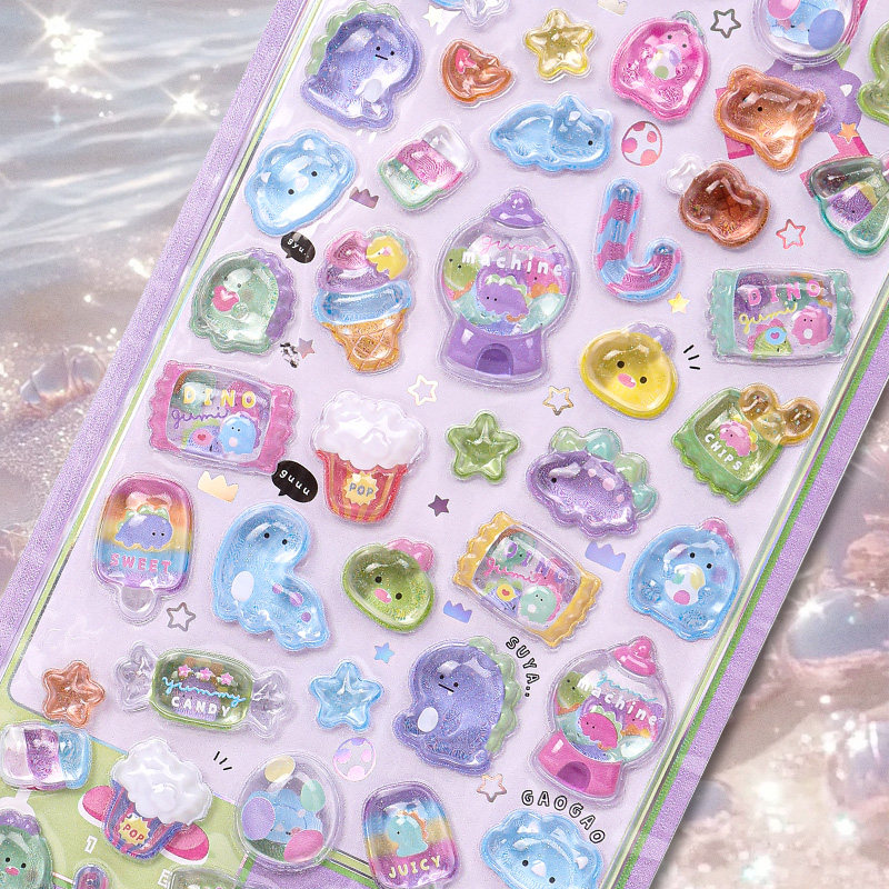 3D立体浮雕贴纸儿童小女孩子宝石图案水晶贴无毒防水泡泡咕卡贴套装公主卡通可爱手机装饰玩具公主生日礼物10