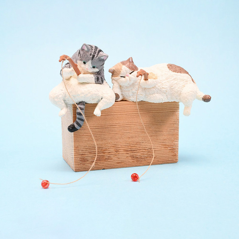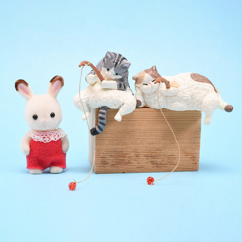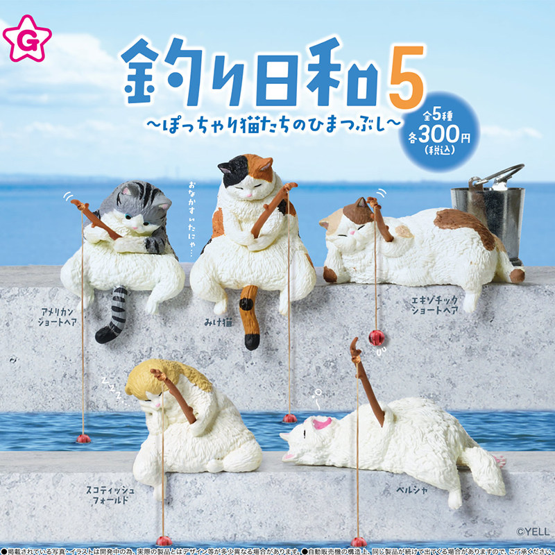 日本正版YELL 第5弹 钓鱼好天气 休闲猫咪钓鱼扭蛋 三花猫猫摆件