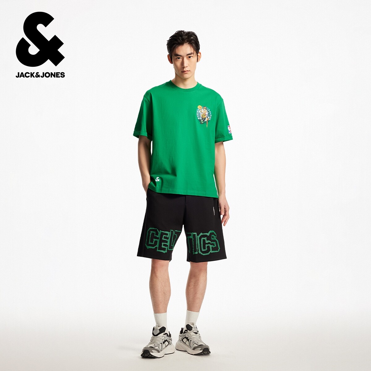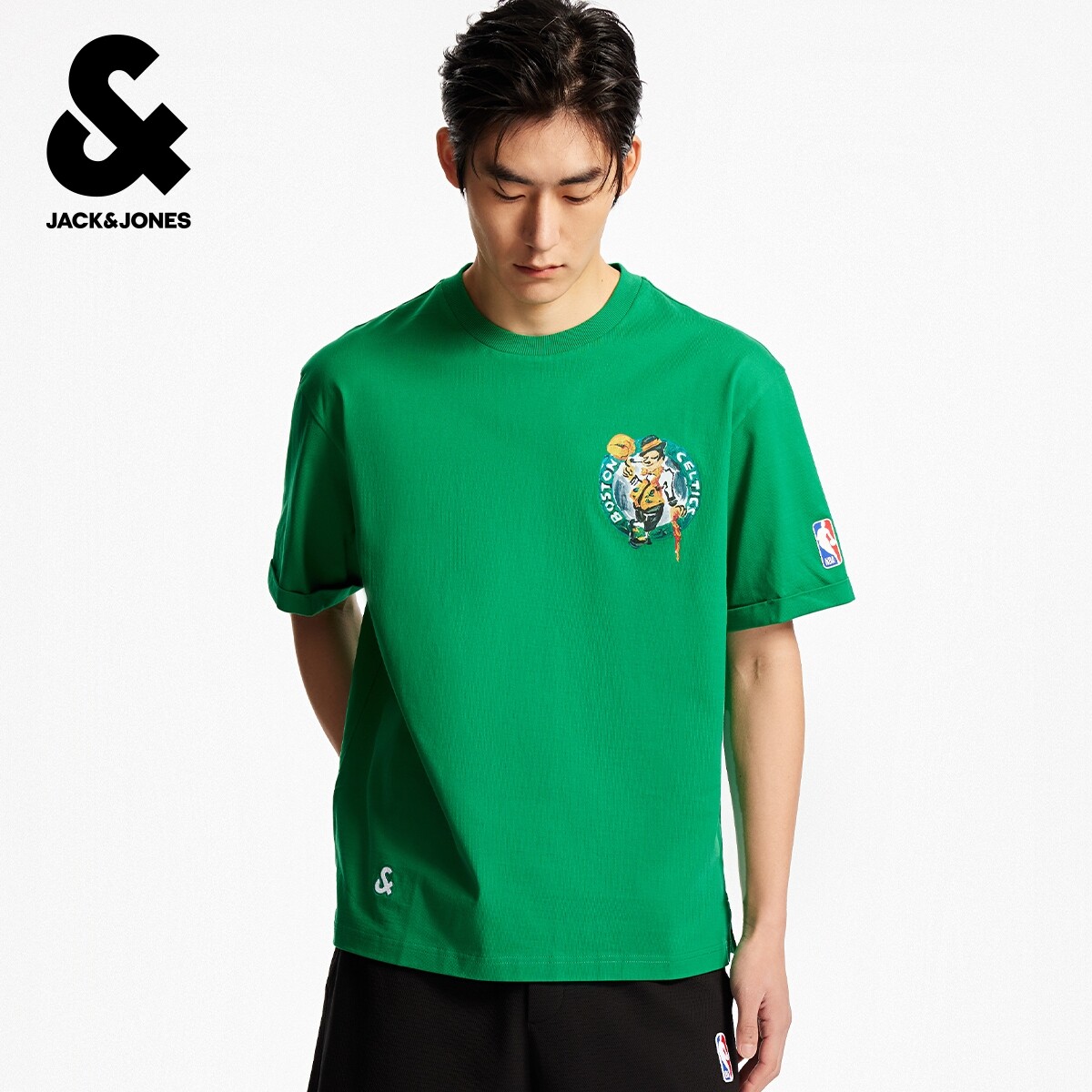 杰克琼斯NBA联名款男装秋季新款纯棉篮球字母印花日常休闲短袖T恤