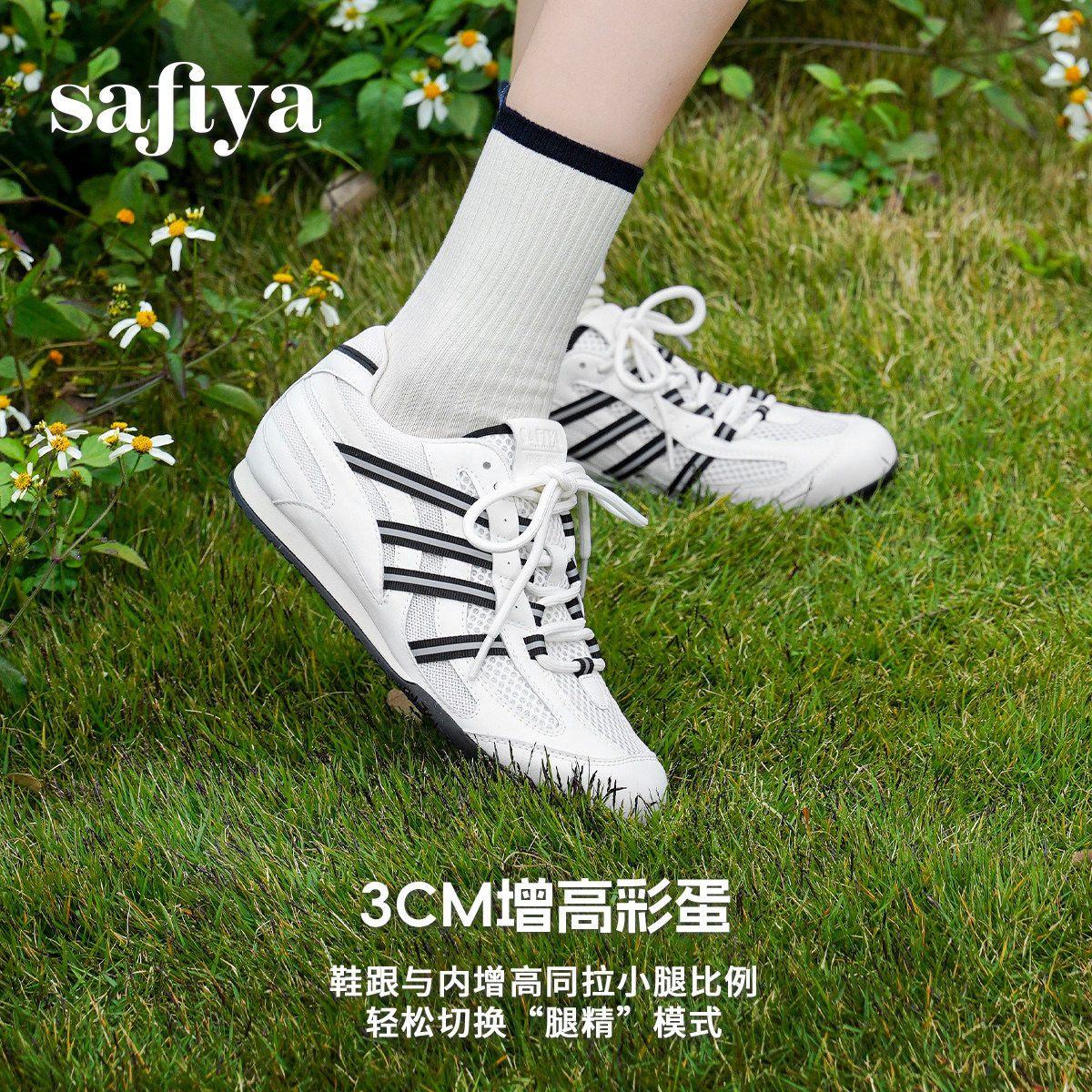 索菲娅2026年春季新品网面透气撞色休闲轻便内增高运动鞋阿甘鞋
