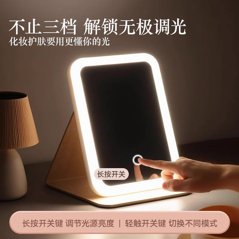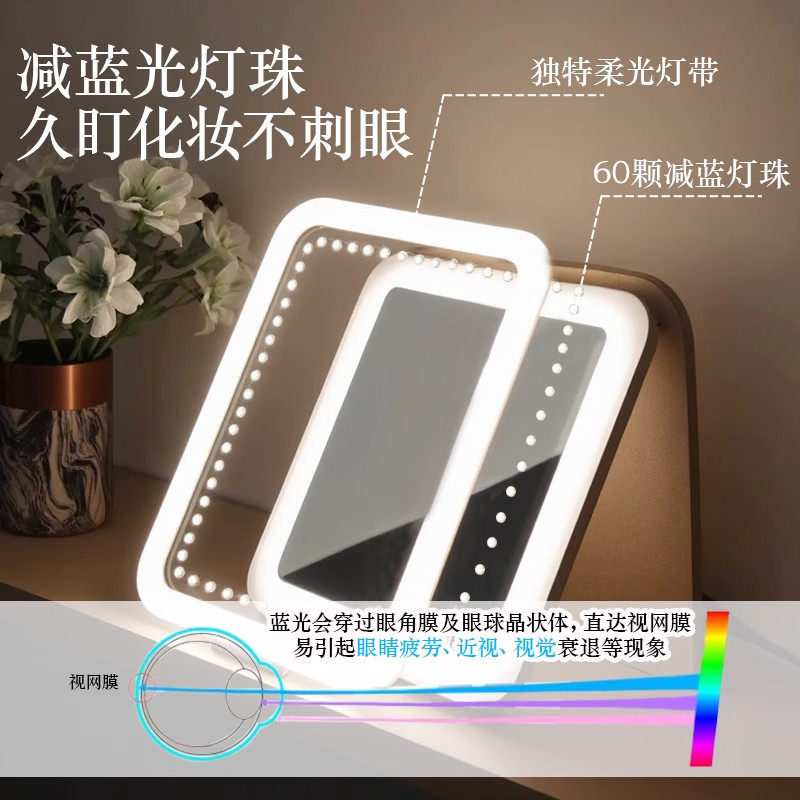 led镜子化妆镜桌面台式带灯折叠智能高清便携随身学生高级办公室