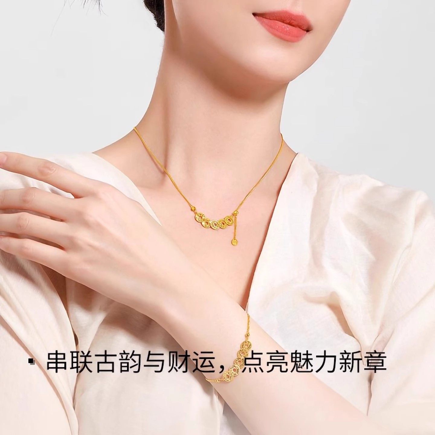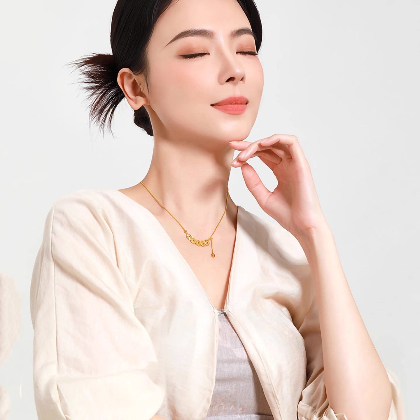 越南沙金五帝钱项链女钱多多碎碎冰黄金色仿真钱币锁骨链套链礼物