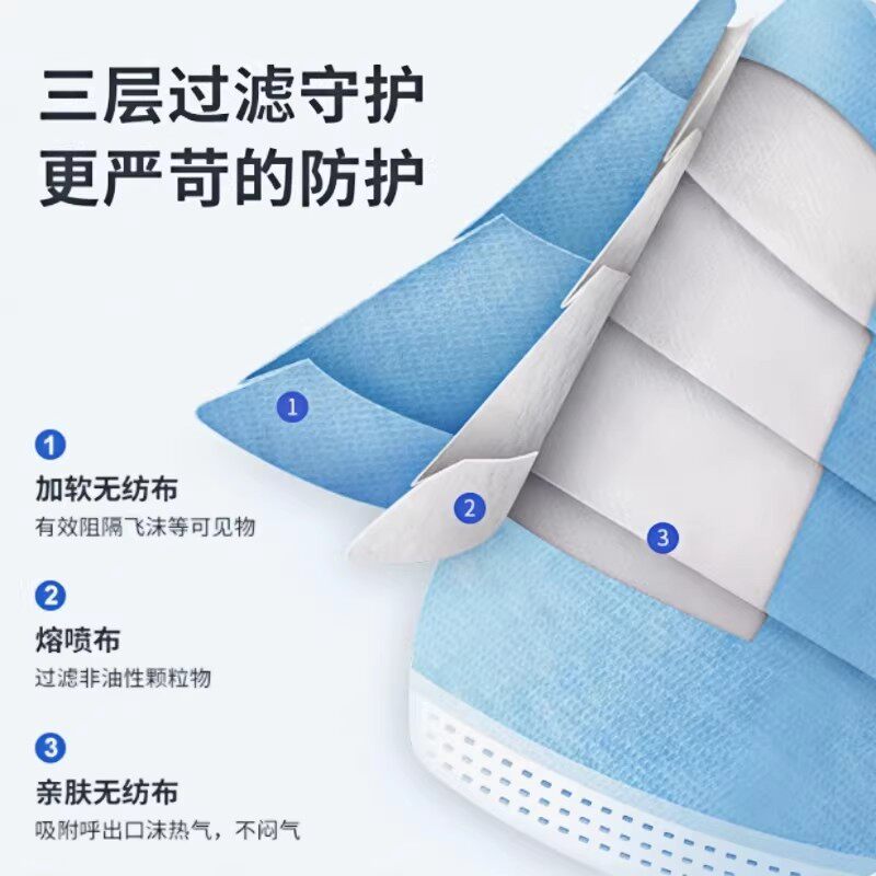 现货一次性三层防护口罩鼻面罩含熔喷层成人民用防粉尘透气防雾霾