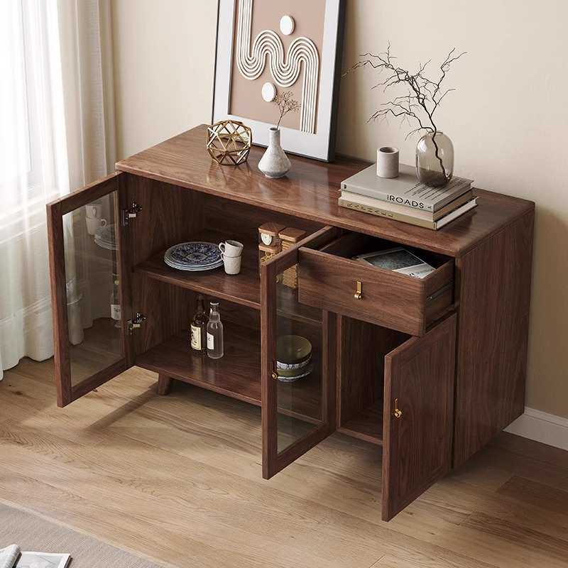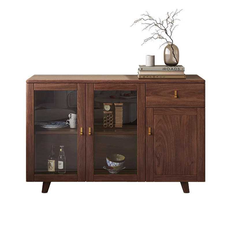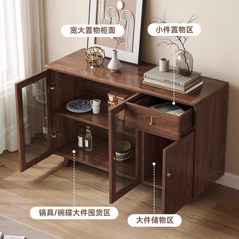 北美黑胡桃木餐边柜简约实木一体靠墙收纳储物柜客餐厅原木茶水柜