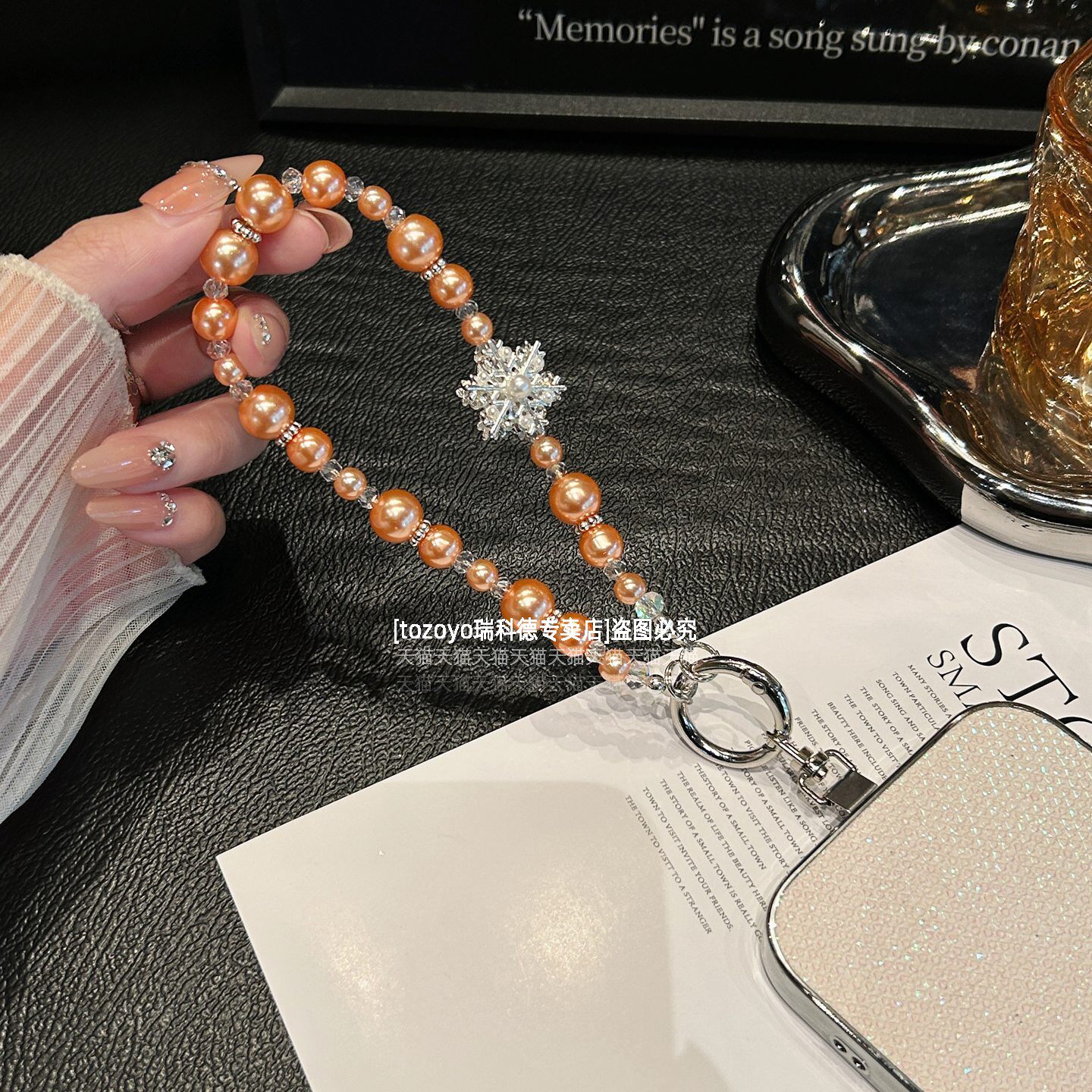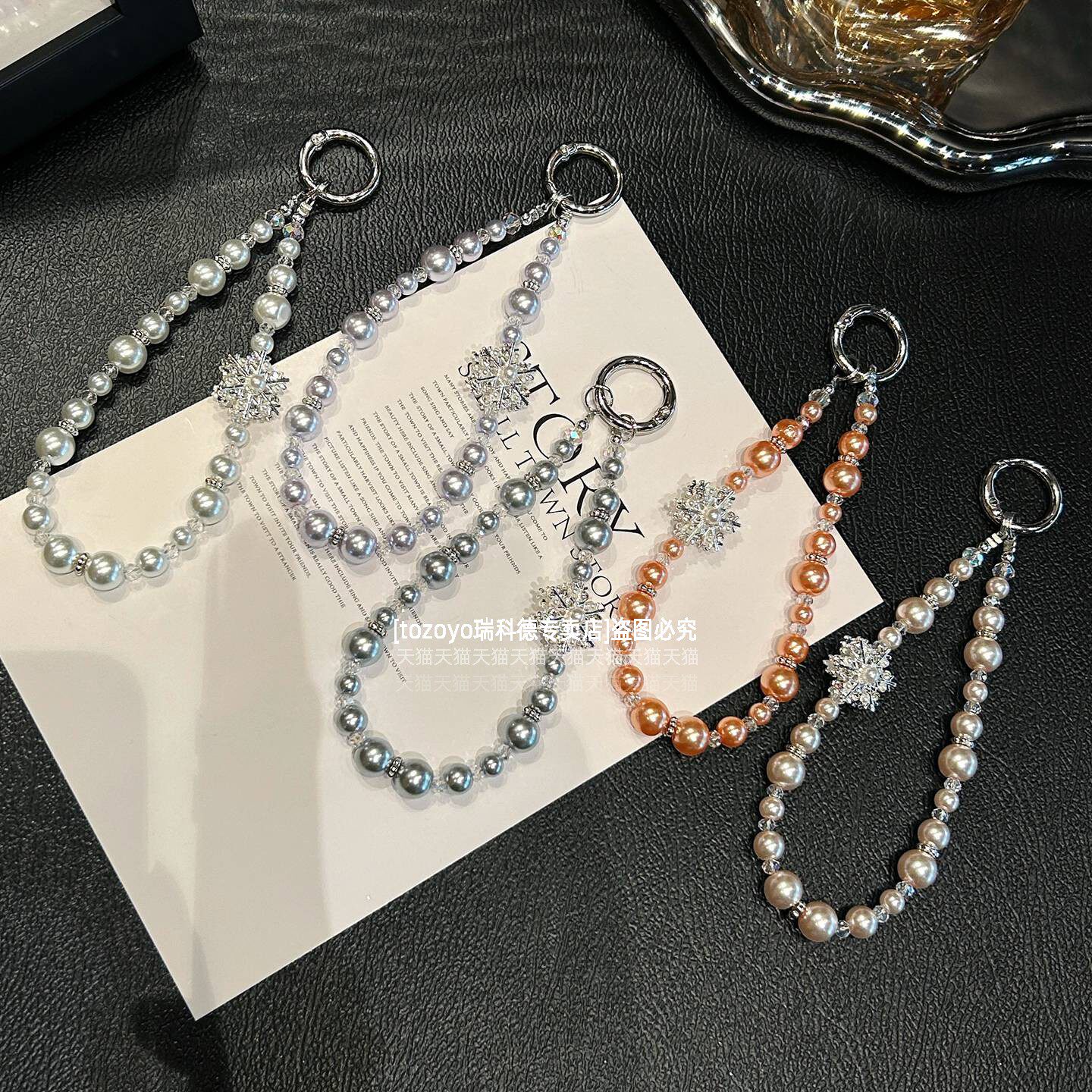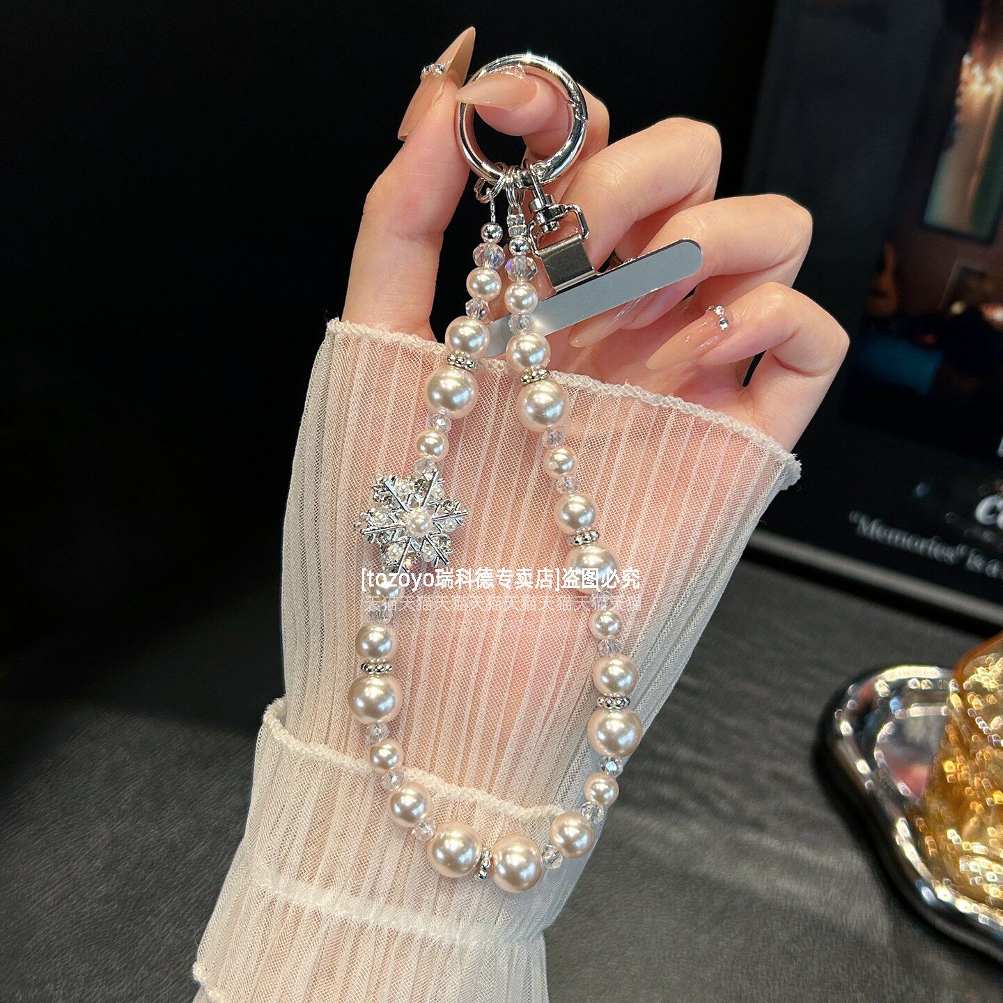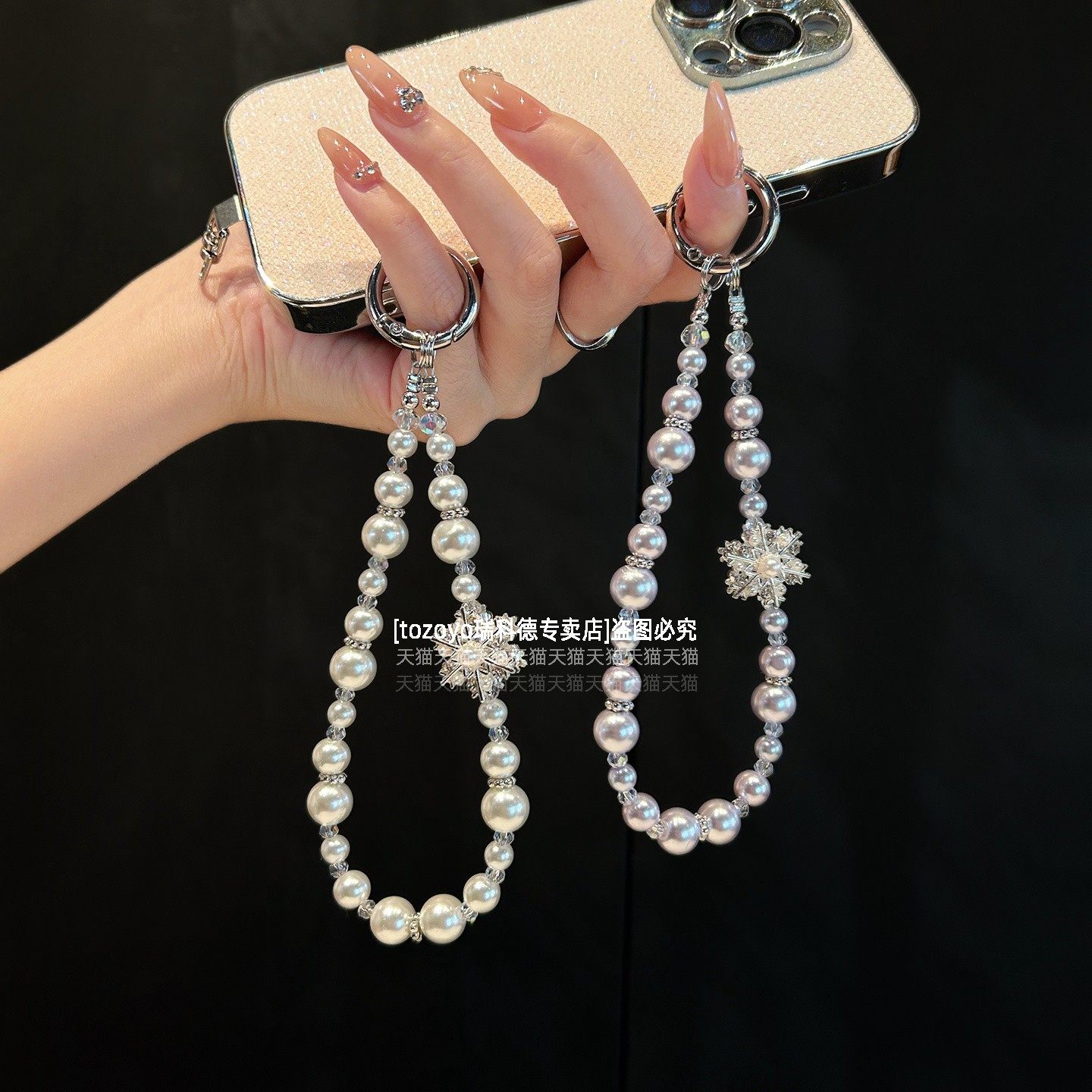 绝美雪花手机链挂饰超亮珍珠挂链重工高级感挂手腕串珠链条轻奢时尚腕带女包包挂件钥匙扣耳机相机挂绳手链壳