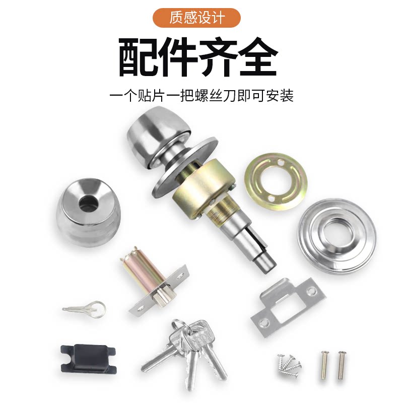 门锁家用通用型球形锁室内卧室卫生间锁具老式房门木门不锈钢圆锁