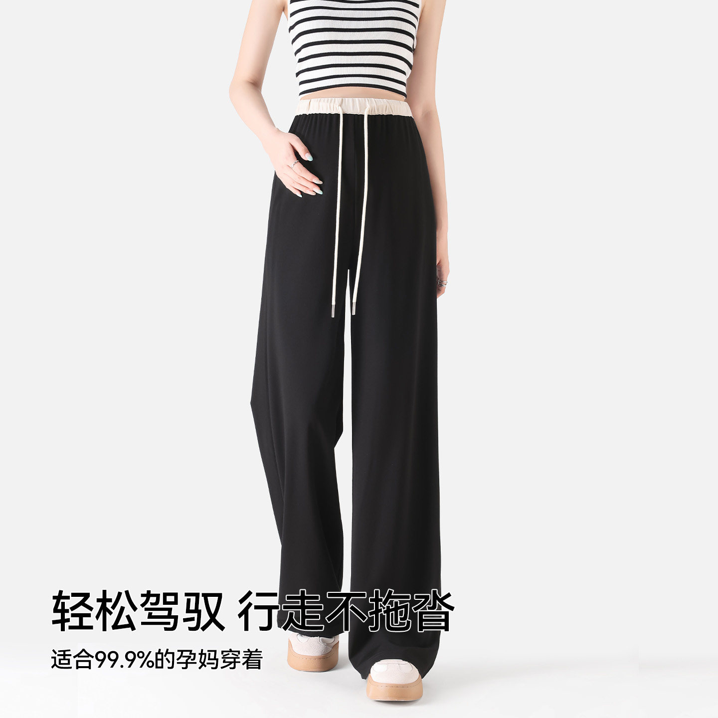 婧麒孕妇裤子春秋外穿撞色无托腹阔腿裤孕期不勒肚子休闲裤孕妇装